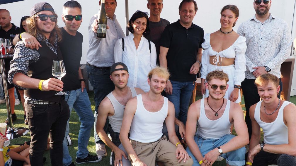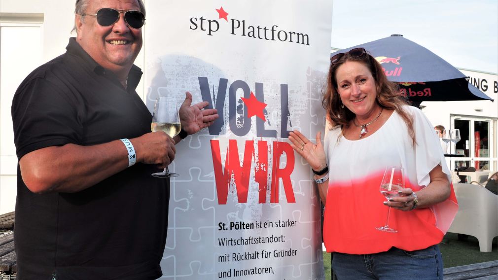 St. Pölten Plattform Vorstandsmitglied Alexander Klenk begrüßte die Plattform Mitglieder und Gäste auf der NXP Lasertron Terasse. Hauptstadtwinzer Rudi Hofmann kredenzte den Hauptstadtwein. Das who is who der St. Pöltner Wirtschaft war anwesend und begeistert von der heimischen Musikszene.