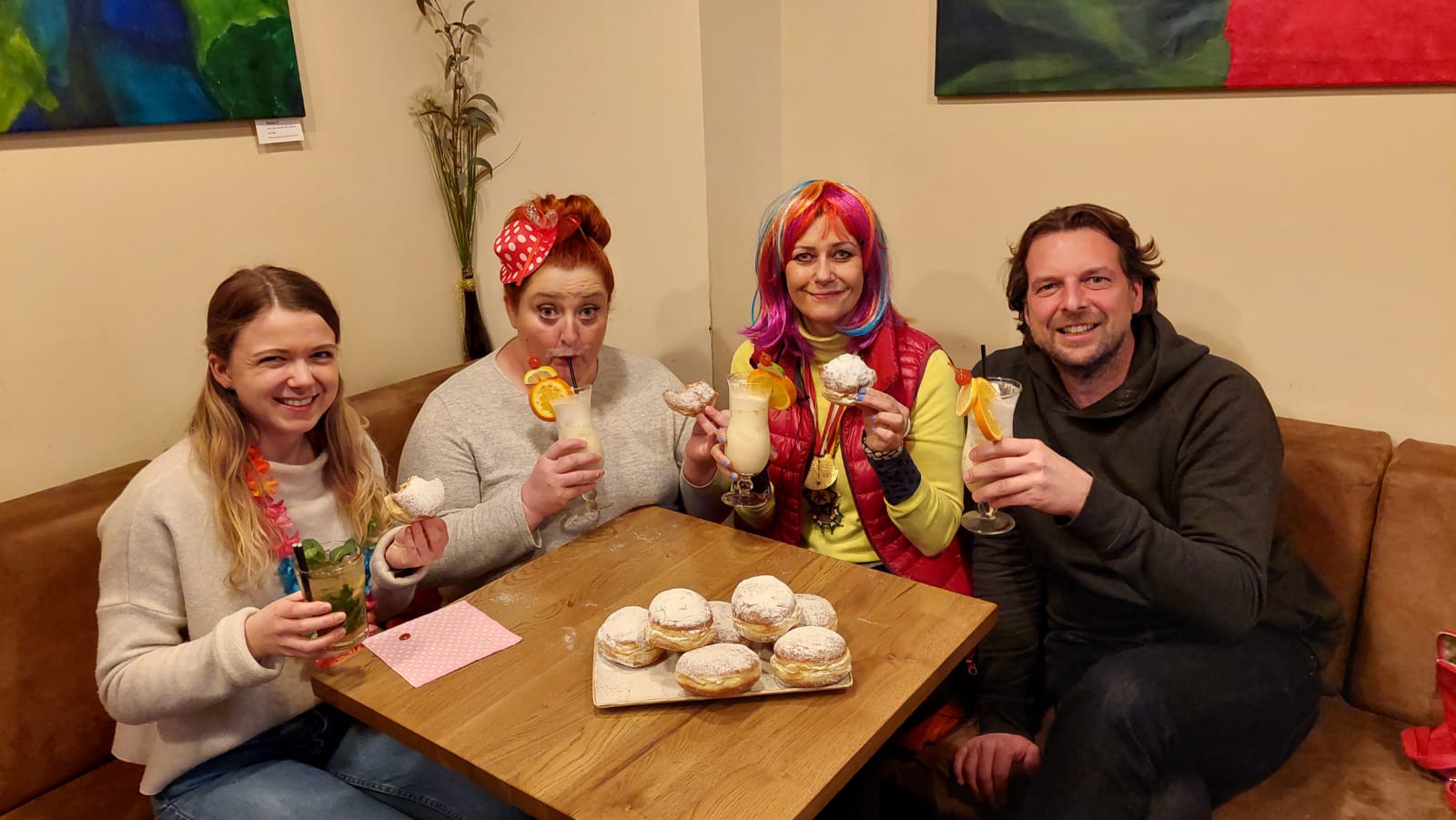 Natürlich dürfen bei einer Faschingstour durch die insBesondere Innenstadt auch süffige Cocktails nicht fehlen — serviert im Café im Palais Wellenstein. Zu sehen ist die Faschingsausgabe von "Polly plauscht" ab Donnerstag, 24. Februar, auf allen online-Kanälen der Stadt.