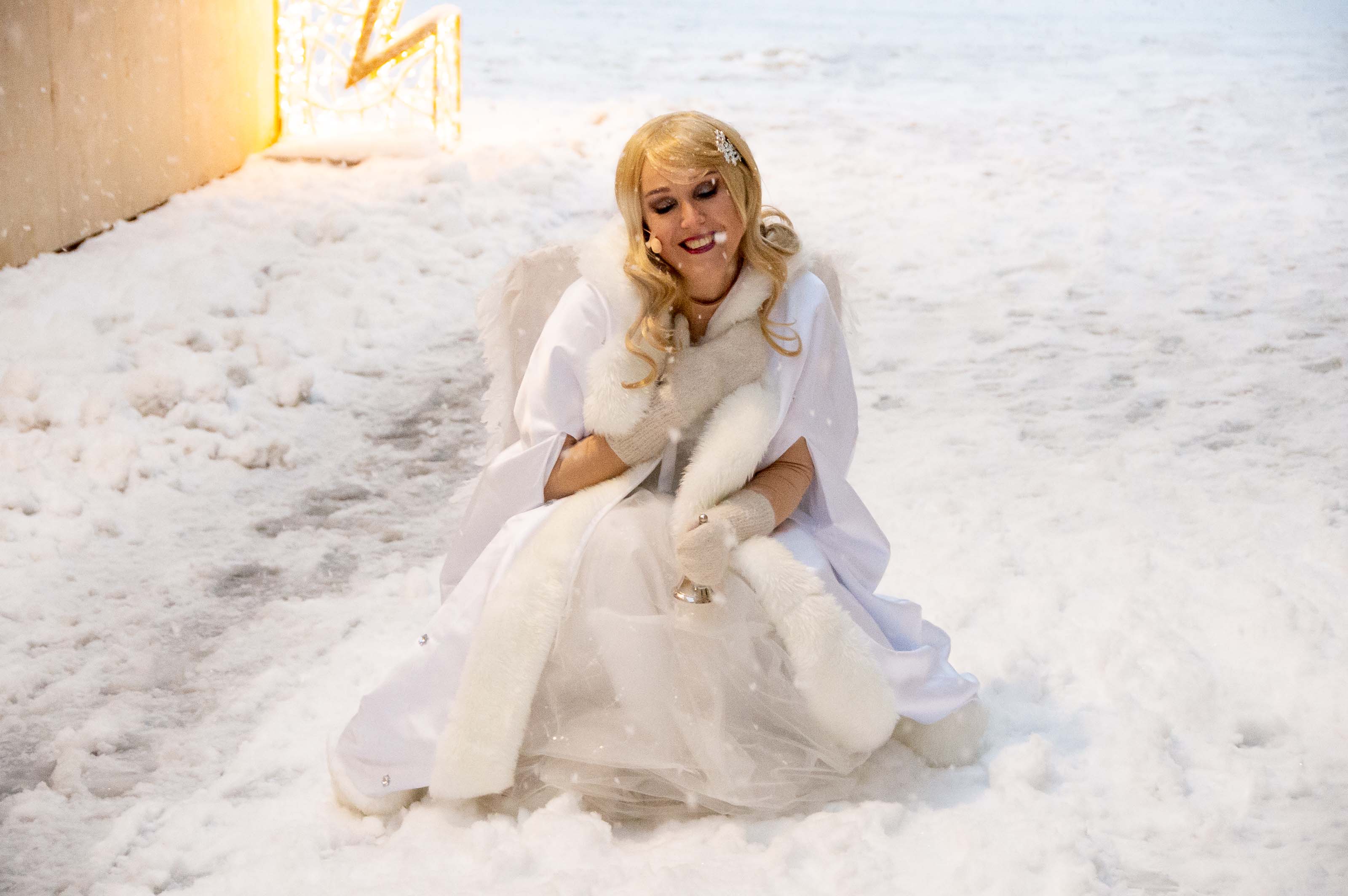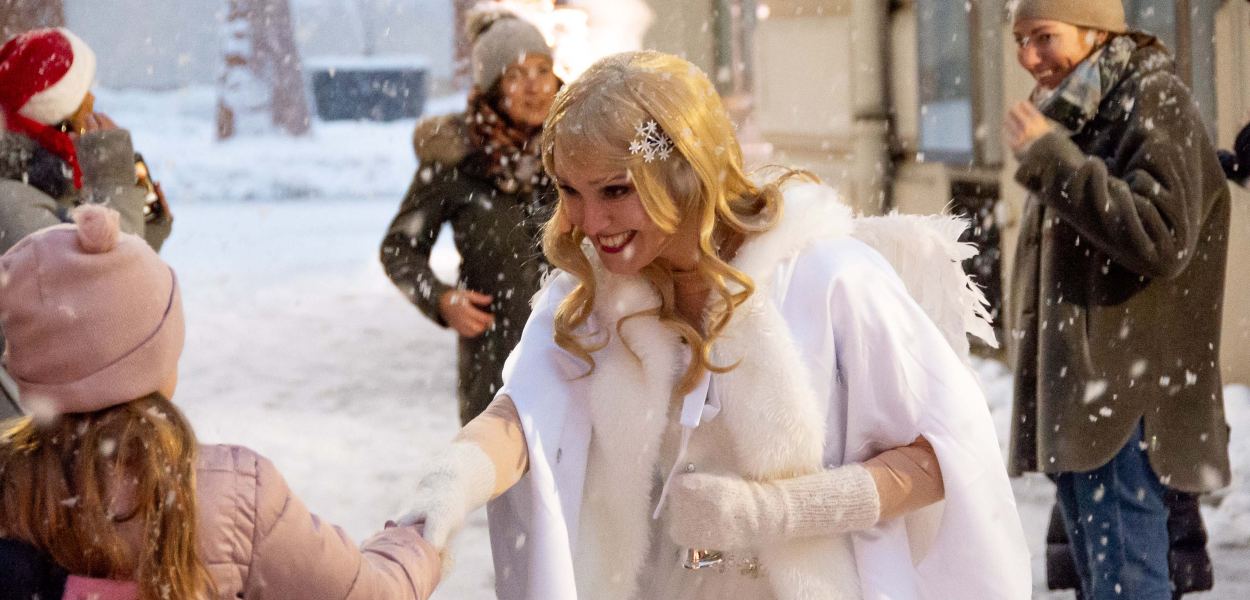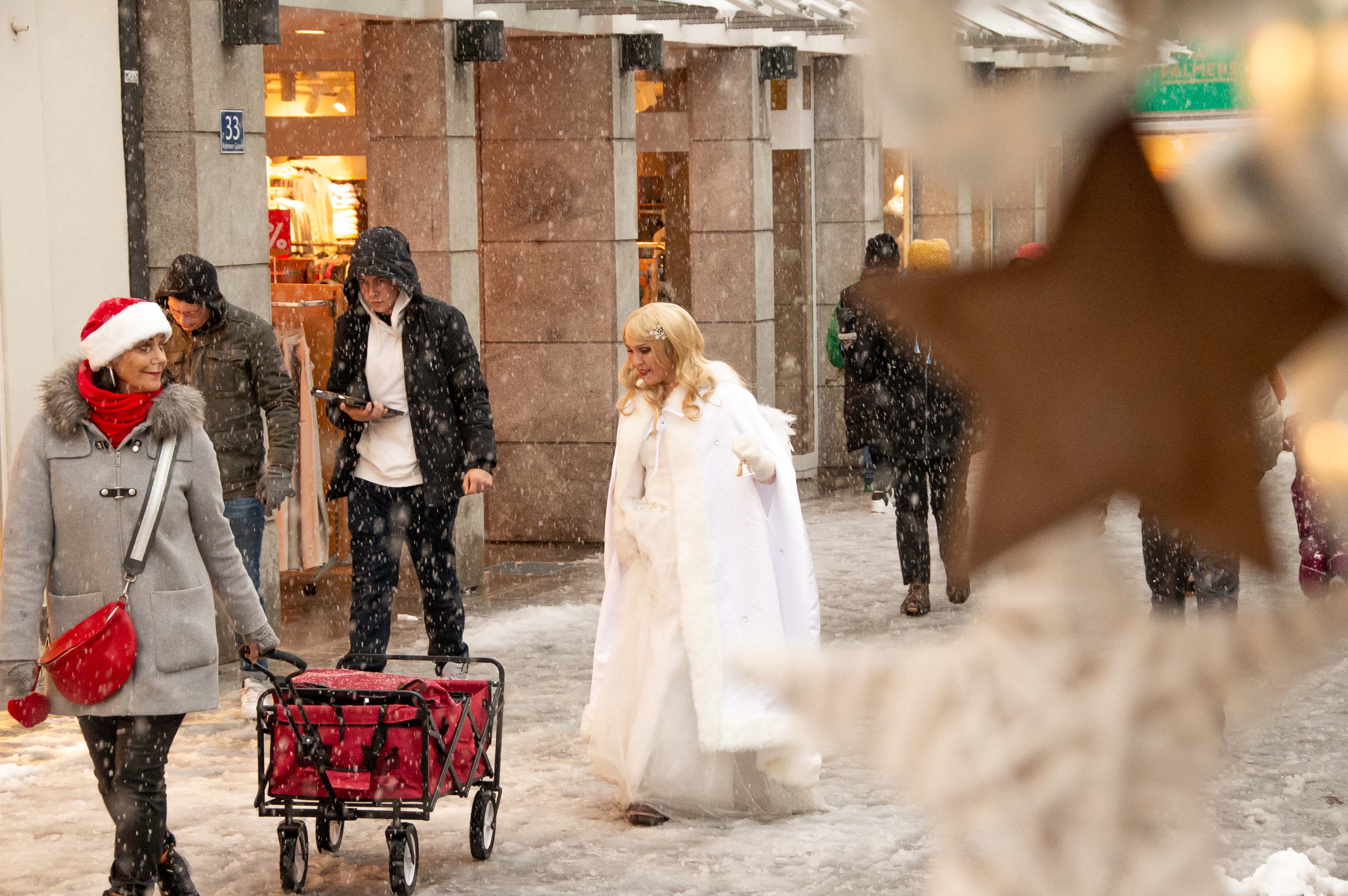 Dicke Schneeflocken fielen vom Himmel in der weihnachtlich beleuchteten Stadt, buntgekleidete Besucher schlenderten durch die festlich geschmückten Straßen und Gassen, kauften erste Weihnachtsgeschenke — und dazwischen erschien da und dort das Christkind im Schnee ...