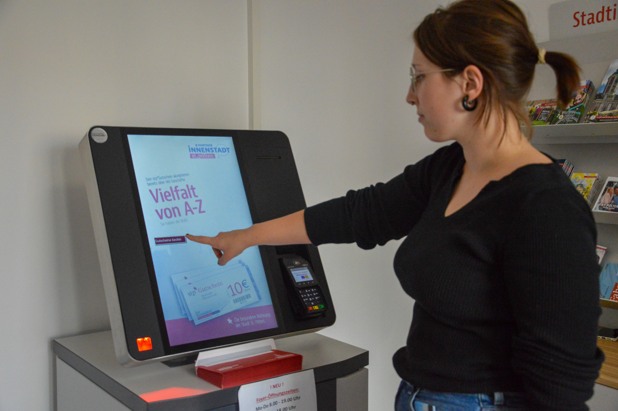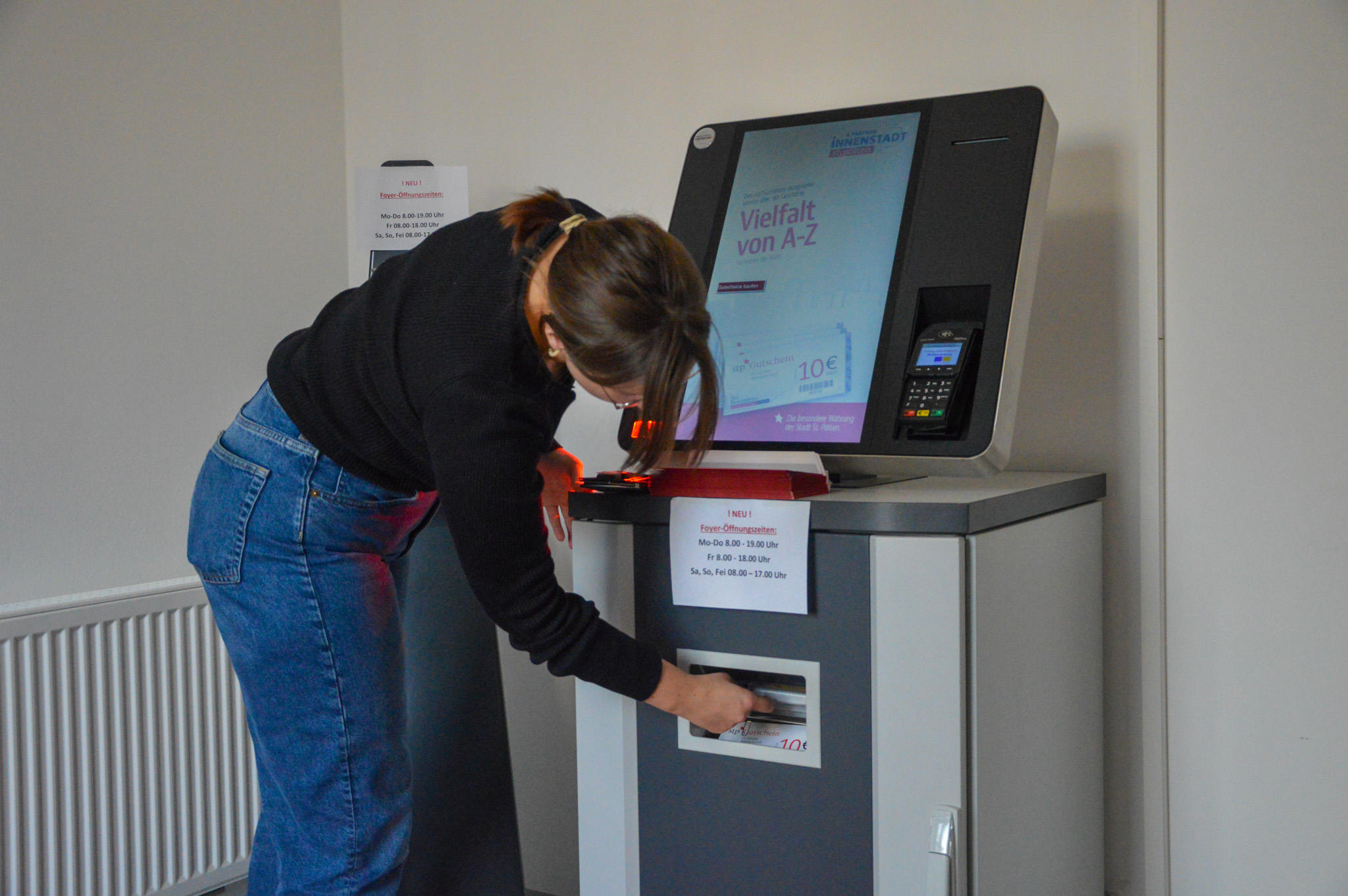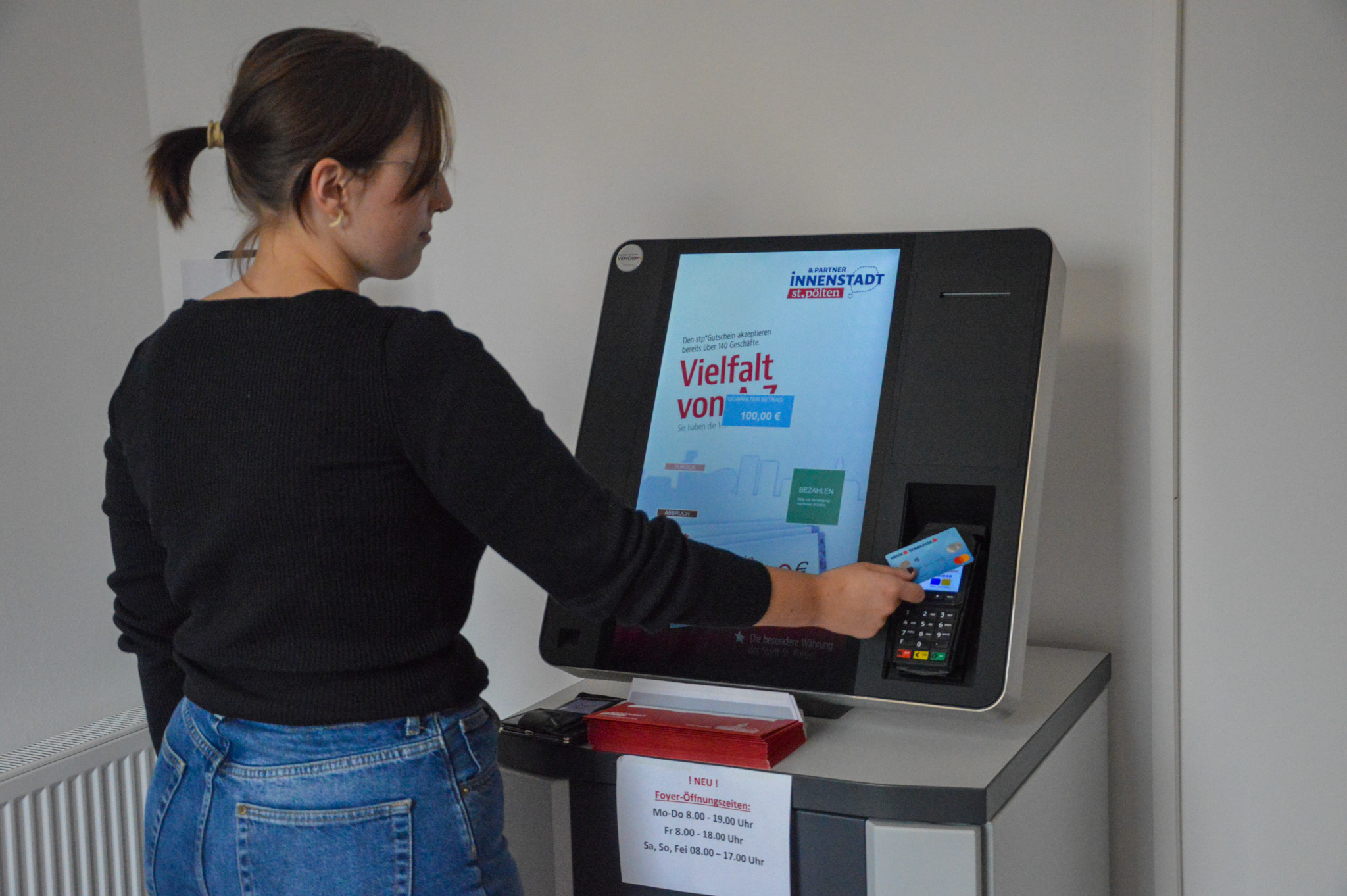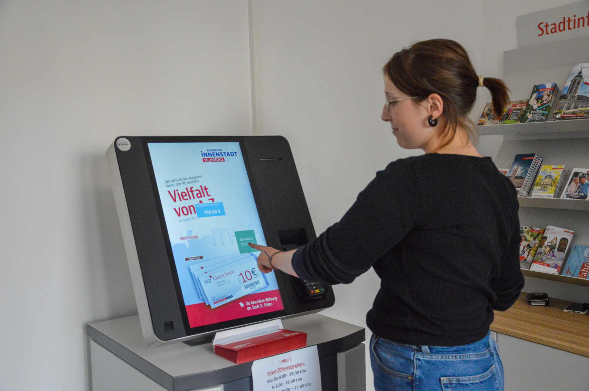 So funktioniert's, das stp*Gutschein-Kaufen beim Automaten. Foto: Datzinger