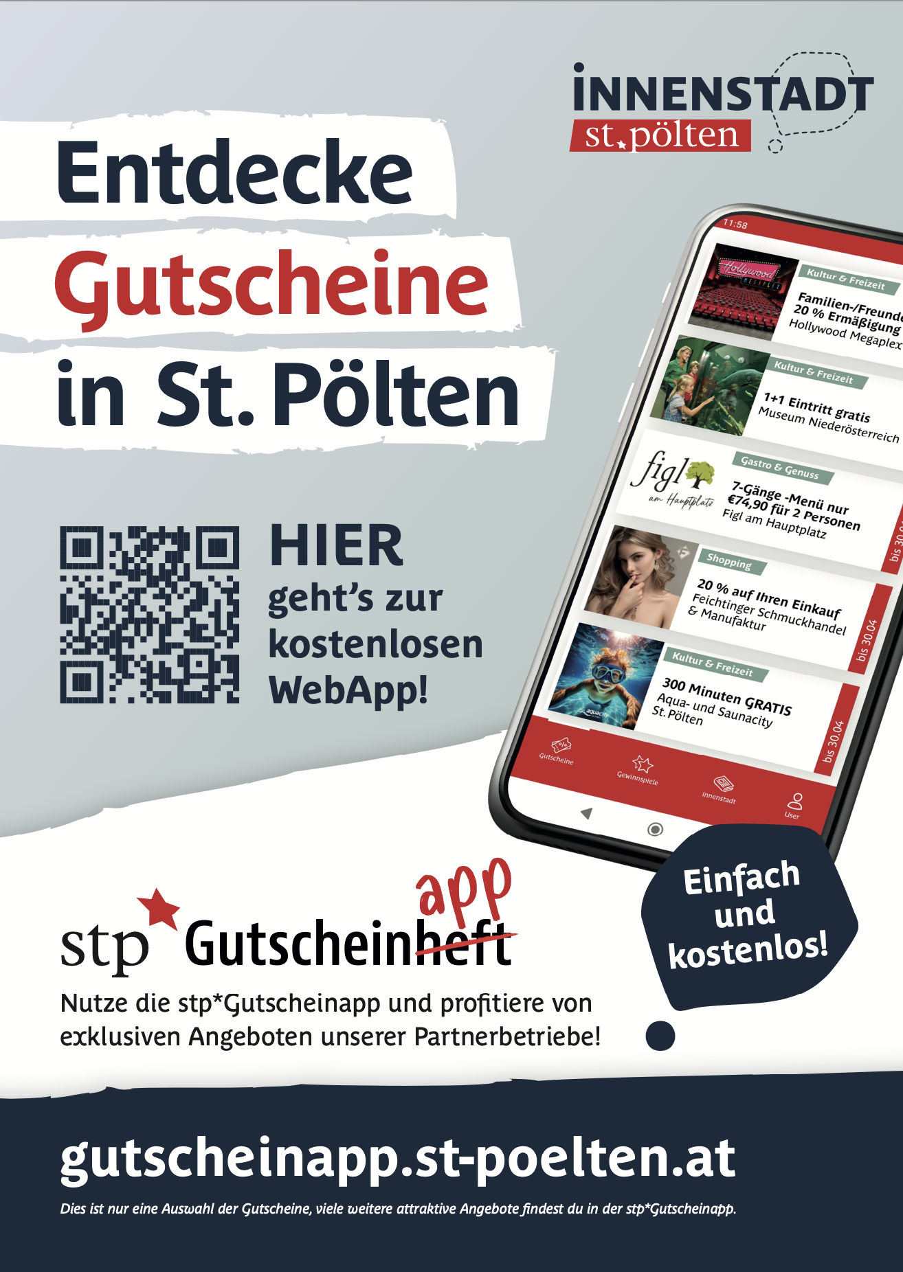 Aktionen & Gewinnspiele: St. Pöltens neue Gutscheinapp bietet zahlreiche Benefits für Innenstadt-Flanierer und Shopping Fans: Gratis parken, vergünstigte Freizeitangebote nutzen oder Rabatte genießen? Auf gutscheinapp.st-poelten.at sind regelmäßig Aktionen zahlreicher Betriebe aus der Innenstadt St. Pölten und darüber hinaus zu finden.
