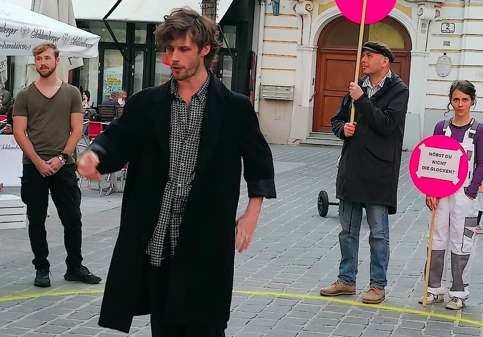 Die Tangente hielt dem Publikum mit einer Performance den Spiegel vor, auf dem Domplatz ...