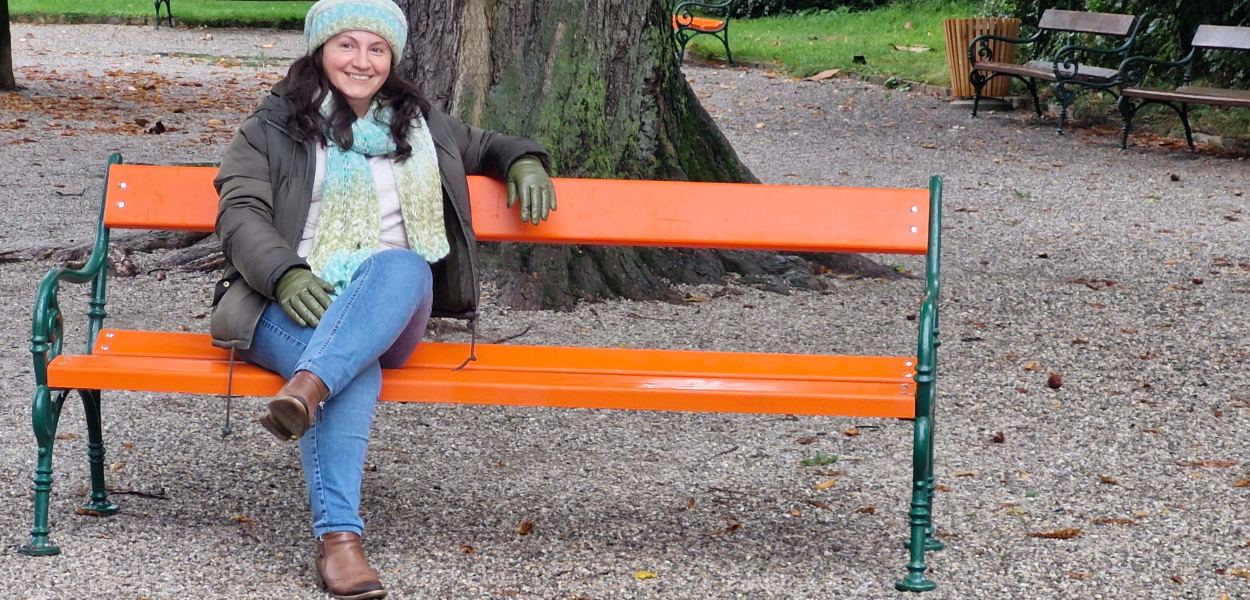 Zekiye mit wärmenden Accessoires vom Hutfachgeschäft Öckher im Sparkassenpark. Foto: Rlebnisreich
