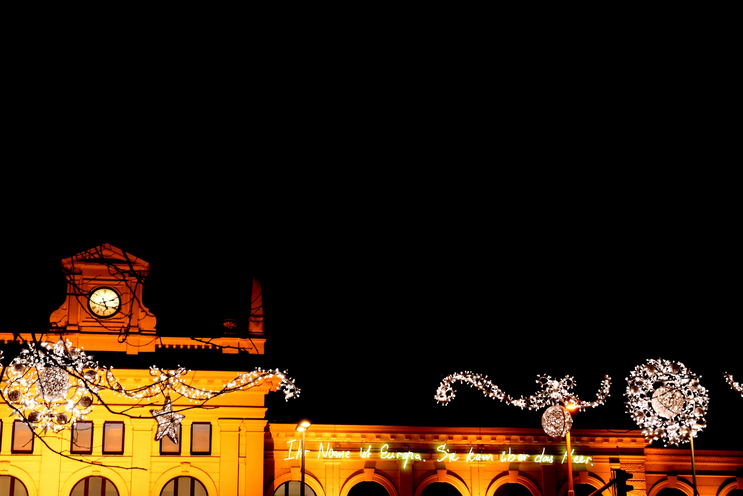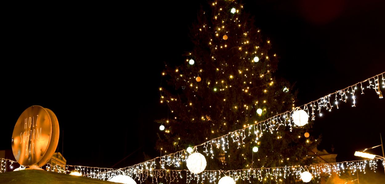 Ich starte beim Rathaus, es ist schon finster, die Rathausuhr zeigt 17 Uhr, und ich schlendere über den Weihnachtsmarkt in Richtung Franziskaner-Kirche. Die vielen unterschiedlichen Hütten sind heimelig beleuchtet, Menschen stehen in kleinen Gruppen beisammen, wärmende Getränke in den Händen, immer wieder flitzen ein paar Kinder laut kichernd an mir vorbei, zwei Mal, drei Mal, immer im Kreis um die Dreifaltigkeitssäule und den festlich beleuchteten Weihnachtsbaum herum. Ich bleibe stehen, gehe ein paar Schritte zurück, stelle mich vor den Baum, und lege den Kopf in den Nacken. Ein paar Minuten lang stehe ich nur so da, mache nichts anderes, als den Baum, die Lichter, die Gerüche und Geräusche um mich herum wahrzunehmen, das helle, immer wiederkehrende Kinderlachen. Und mit einem Mal legt sich dann ein sanftes Lächeln auf meine Lippen, und es macht sich ein warmes Gefühl in meinem Bauch breit, obwohl das Wetter nass-kalt ist, und ein eisiger Wind weht.