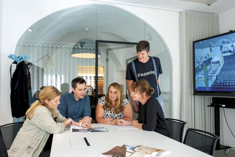 „Büromöbel einfach so in einer riesigen Halle zu präsentieren hat für mich immer so etwas Kaltes, Unpersönliches“, führt Krumböck weiter aus. „Wenn man hingegen die Möbel dann quasi >in Aktion<, mit echten Menschen und im richtigen Büro-Einsatz sehen kann, bekommt man gleich ein viel besseres Gefühl für die Dinge. Wir wollten einen lebendigen Schauraum gestalten. Gleichzeitig war es natürlich auch ein Ziel, in der Stadt St. Pölten sichtbarer zu werden.“ Der Co-Working-Space bei Supertisch bietet auf zwei Etagen alles, was man für modernes Arbeiten benötigt, und das alles in einer angenehmen, beinahe familiären Atmosphäre und dem hochwertigen und angenehmen Ambiente eines top-sanierten Altbaus. Für monatlich 500 Euro (netto) können nicht nur der Arbeitsplatz, sondern auch die gesamte vorhandene Büro-Infrastruktur mitbenutzt werden.