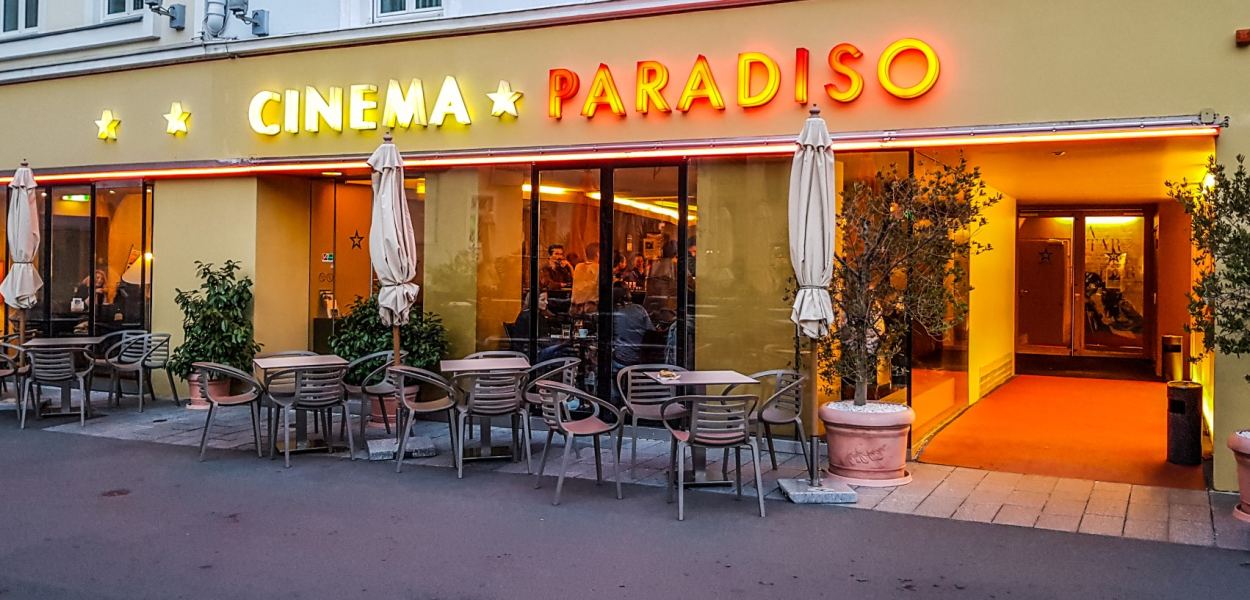 Die Cinema Bar ist bei Tag und bei Nacht der Treffpunkt der Stadt. KaffeegenießerInnen, WeinexpertInnen und NachtschwärmerInnen – sie alle fühlen sich hier rundum wohl. Genießen Sie in einem entspannten Ambiente unsere eigene Kaffee-Röstung „Creazione Paradiso“ von Caliano, schmökern Sie durch eine bunte Auswahl an nationalen und internationalen Tages- und Wochenzeitungen. Untermalt von sanfter Musik ideal geeignet um anregende Gespräche zu führen. Sonn- und Feiertage können Sie hier zudem mit einem gemütlichen All-you-can-eat-Brunch beim Cinema Breakfast beginnen. Und als Kinofan auch gleich aktuelle Filme auf der Leinwand genießen.