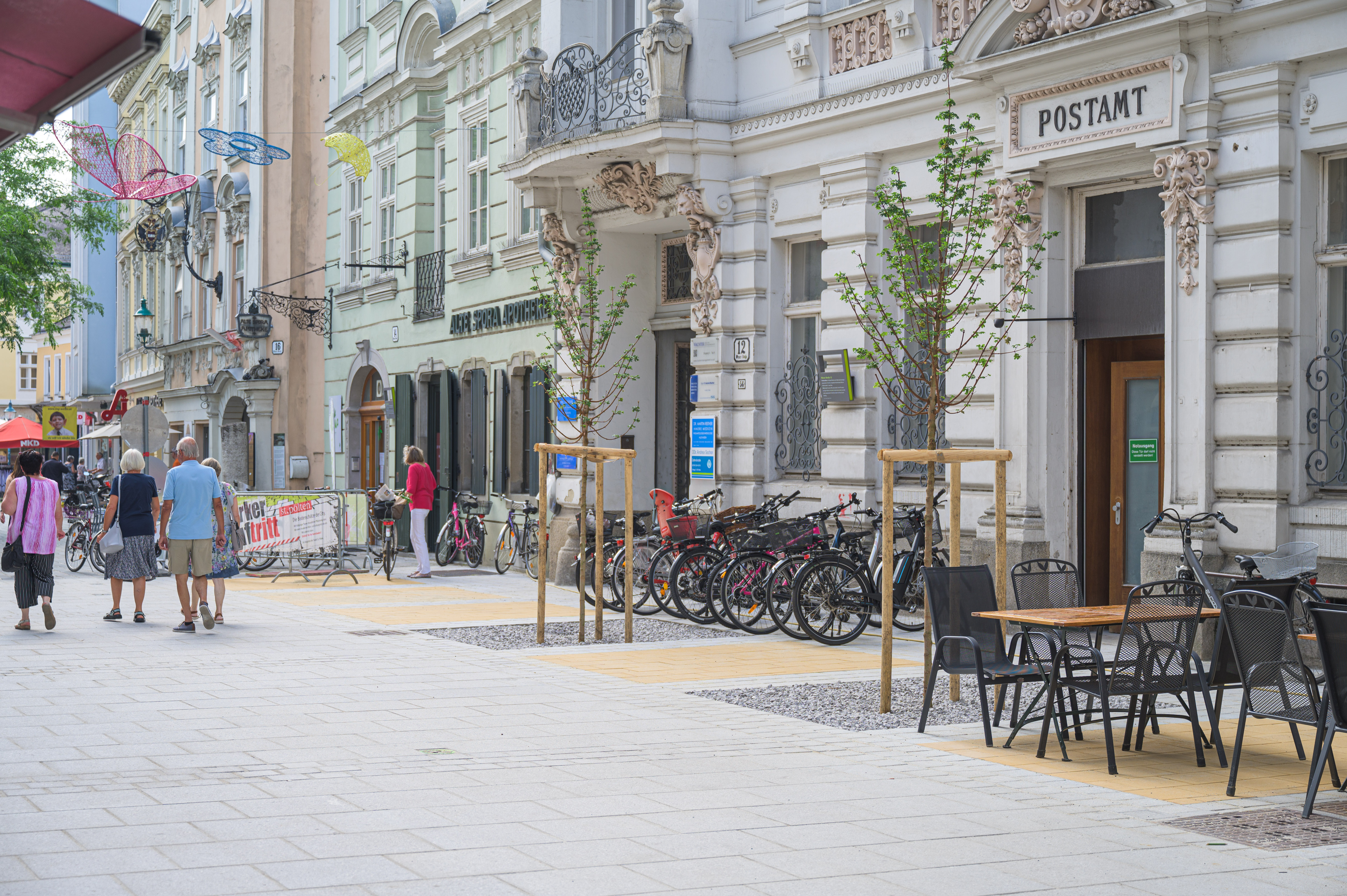 Die Rathausgasse wurde bereits Anfang Mai fertiggestellt. Die Arbeiten in der Wiener Straße, welche derzeit erfolgen, werden voraussichtlich Anfang Juli abgeschlossen. Anschließend wird der Riemerplatz neu gepflastert, diese Arbeiten sollen nach dem Bauzeitplan Ende August fertiggestellt werden.