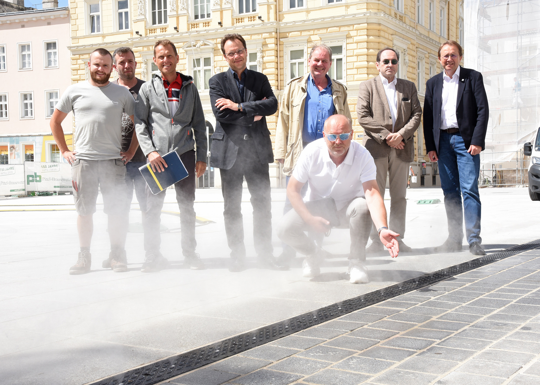 Der Betrieb dieser Sprühnebelanlage ist temperaturabhängig und soll vor allem an heißen Tagen die Aufenthaltsqualität am Domplatz verbessern. Die einzelnen Sprühsektionen können unterschiedlich und in gewissen Zeitabständen in Betrieb genommen werden.