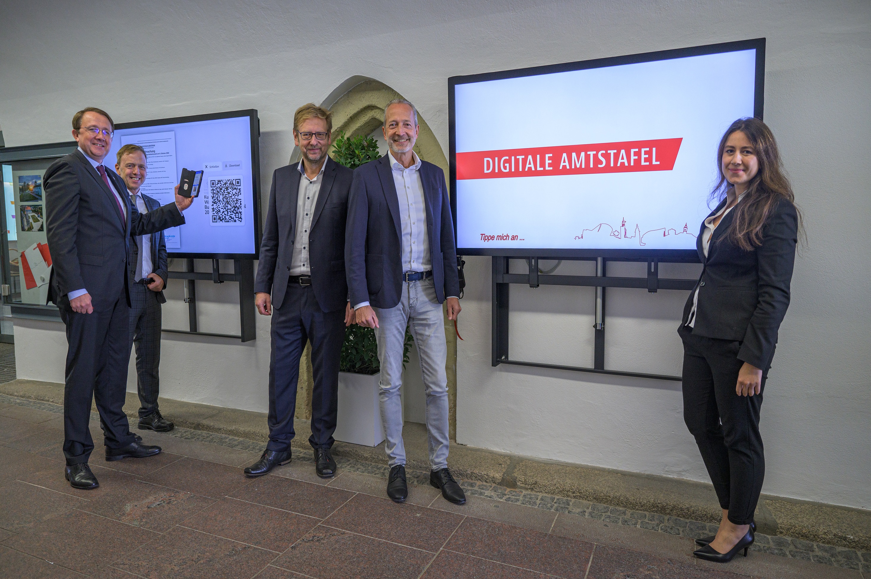 Die Amtstafel im Eingangsbereich des Rathauses mit zahlreichen Aushängen in Papierform ist durch zwei moderne, große Bildschirme mit Touch-Funktion ersetzt worden. „Seit geraumer Zeit war mit einem Platzproblem auf der alten Amtstafel im Eingangsbereich des Rathauses zu kämpfen. Rund 500 Verordnungen, Verlautbarungen, Kundmachungen, Bekanntmachungen und andere Schriftstücke wurden von uns jährlich ausgehängt“, weiß Martin Koutny vom Bürgerservice. Die Zahl der auszuhängenden Schriftstücke ist von Jahr zu Jahr gestiegen. Die Tatsache, dass viele der kundzumachenden Schriftstücke aufgrund der komplexer werdenden Rechtslage immer umfangreicher wurden, verschärfte das Platzproblem weiter.