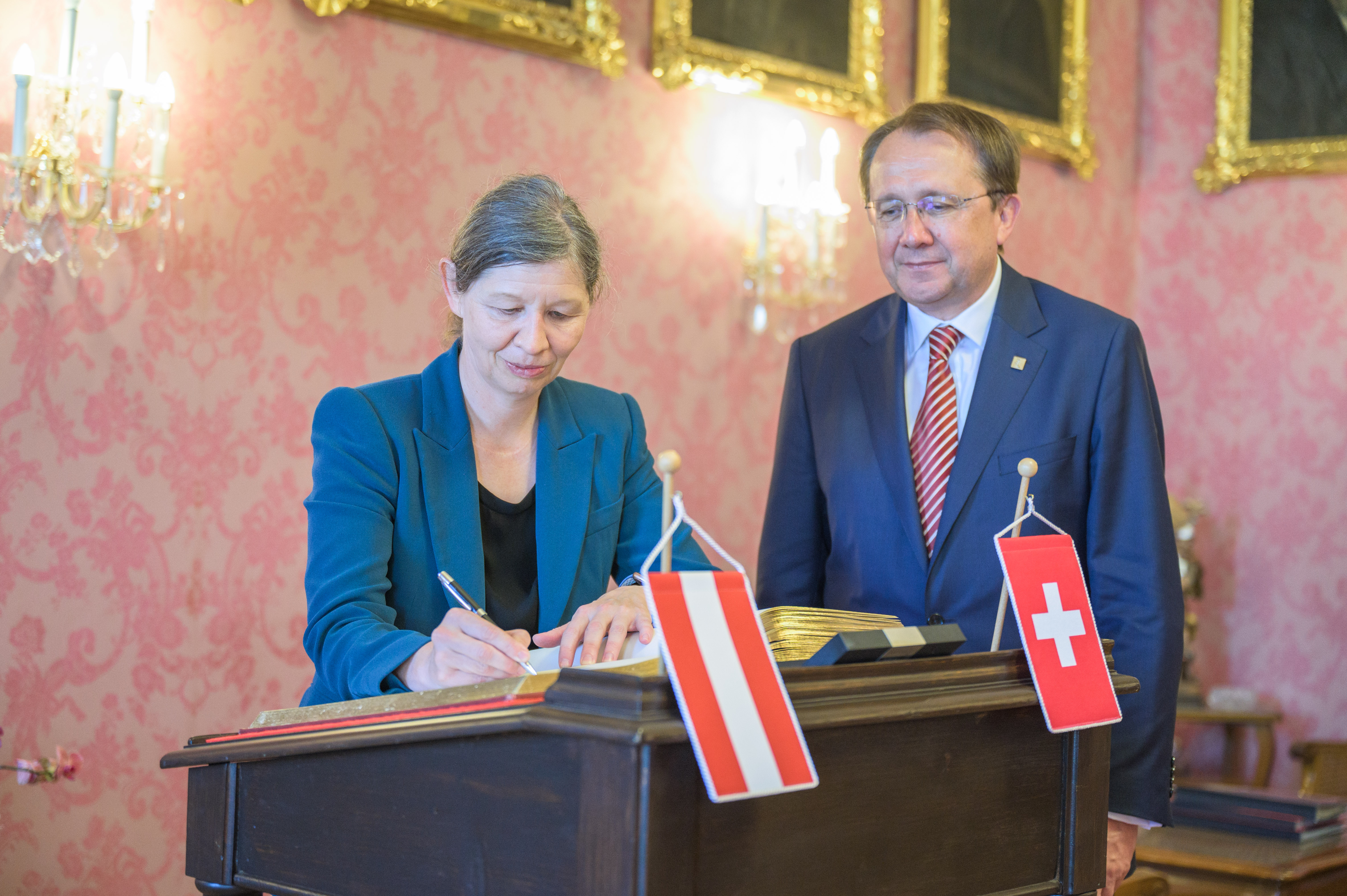 Sie ist seit 2022 in Wien, zuvor war sie Botschafterin in Kanada und auf den Bahamas. Begleitet wurde die Botschafterin von Ina Gruber, Leiterin des Swiss Business Hub. Als Teil der schweizerischen Botschaft in Wien ist der Business Hub für die Umsetzung der Schweizer Exportstrategie in Österreich und die Standortpromotion der Schweiz zuständig und unterstützt Schweizer Unternehmen aktiv bei ihrer Internationalisierung.