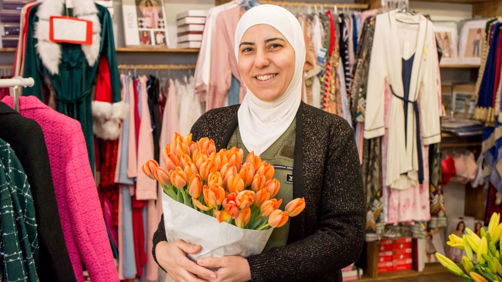 Bunte Tulpen im Frühjahr, Rosen in allen Farben, glänzend grüne Pflanzen in kleinen und großen Töpfen und natürlich die namengebenden Orchideen stehen in Nicht-Baustellenzeiten draußen vor den Auslagen des Geschäfts von Safaa Al Oklah. Derzeit sind die duftenden Blumen drinnen im hübschen Shop in der Marktgasse zu finden. Dort gibt es allerdings noch andere schöne Dinge zu kaufen: In der "Orchidee" hängen feine Lingerie-Sachen und elegante Kleidungsstücke für Damen.