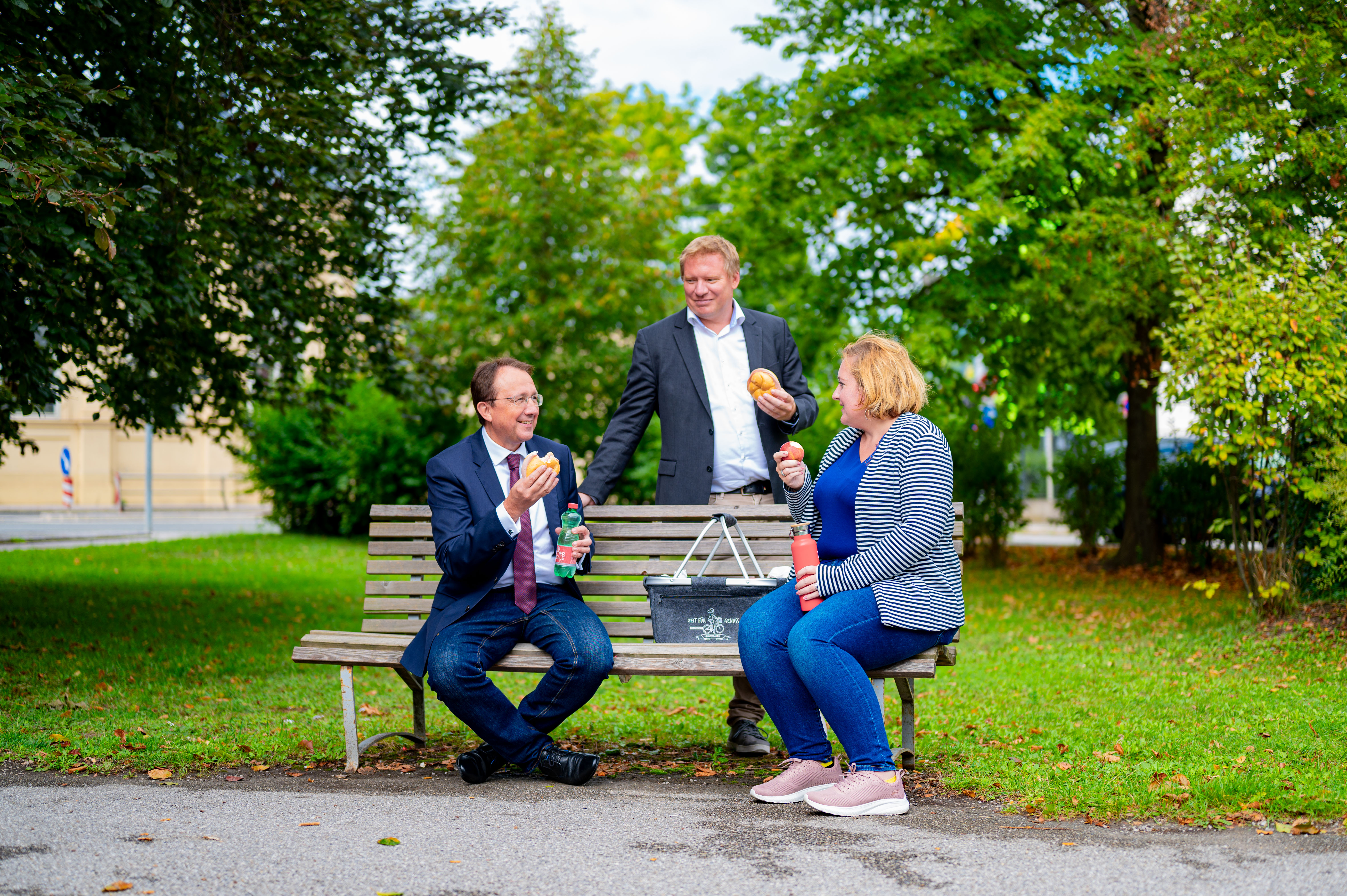 Da die Jause im Freien besonders gut schmeckt, gibt es noch zusätzliche Informationen zu St. Pöltens Naturdenkmälern und Brunnen in der Innenstadt. Damit man auch schnell dorthin kommt, sind auch die Nextbike-Stationen eingezeichnet. Der Folder blickt auch ein bisschen in die Zukunft, denn der dann klimafitte Promenadenring, der Clichy-Pocketpark und der Alumnatsgarten sind bereits eingezeichnet. „Das Angebot an ruhigen und grünen Flecken in der St. Pöltner Innenstadt wird ständig ausgebaut. Jeder soll sich sein ruhiges Fleckchen für die wohlverdiente Pause finden“, ist Bürgermeister Matthias Stadler optimistisch. Verantwortlich für den Inhalt zeichnen Mitarbeiter und Mitarbeiterinnen des Umweltschutzes, der Stadtplanung, der Klimakoordinationsstelle und des Marketings.