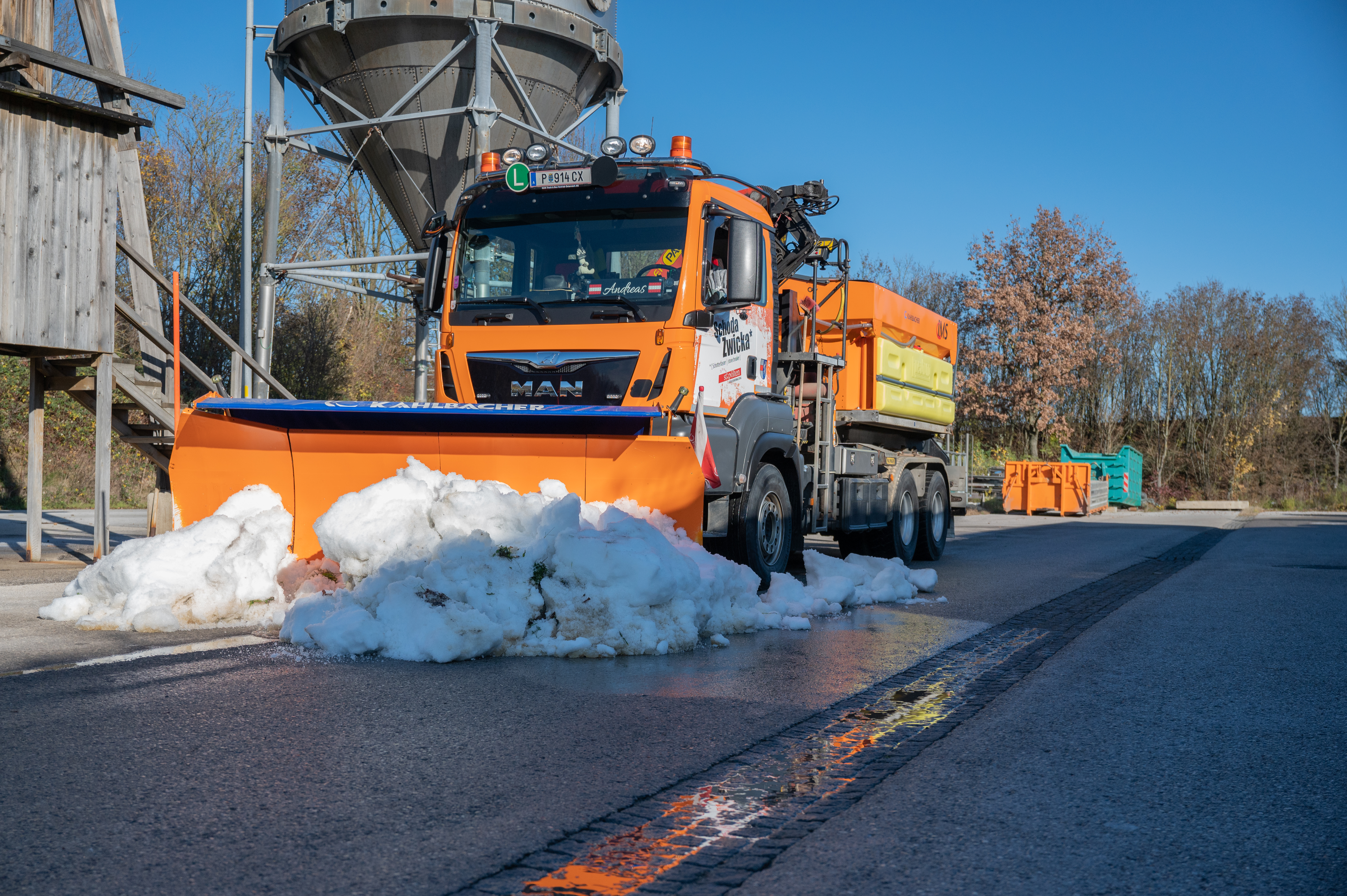 - Ende Oktober beginnt die Schulung der eigenen Winterdienstmannschaft und der Frächter.