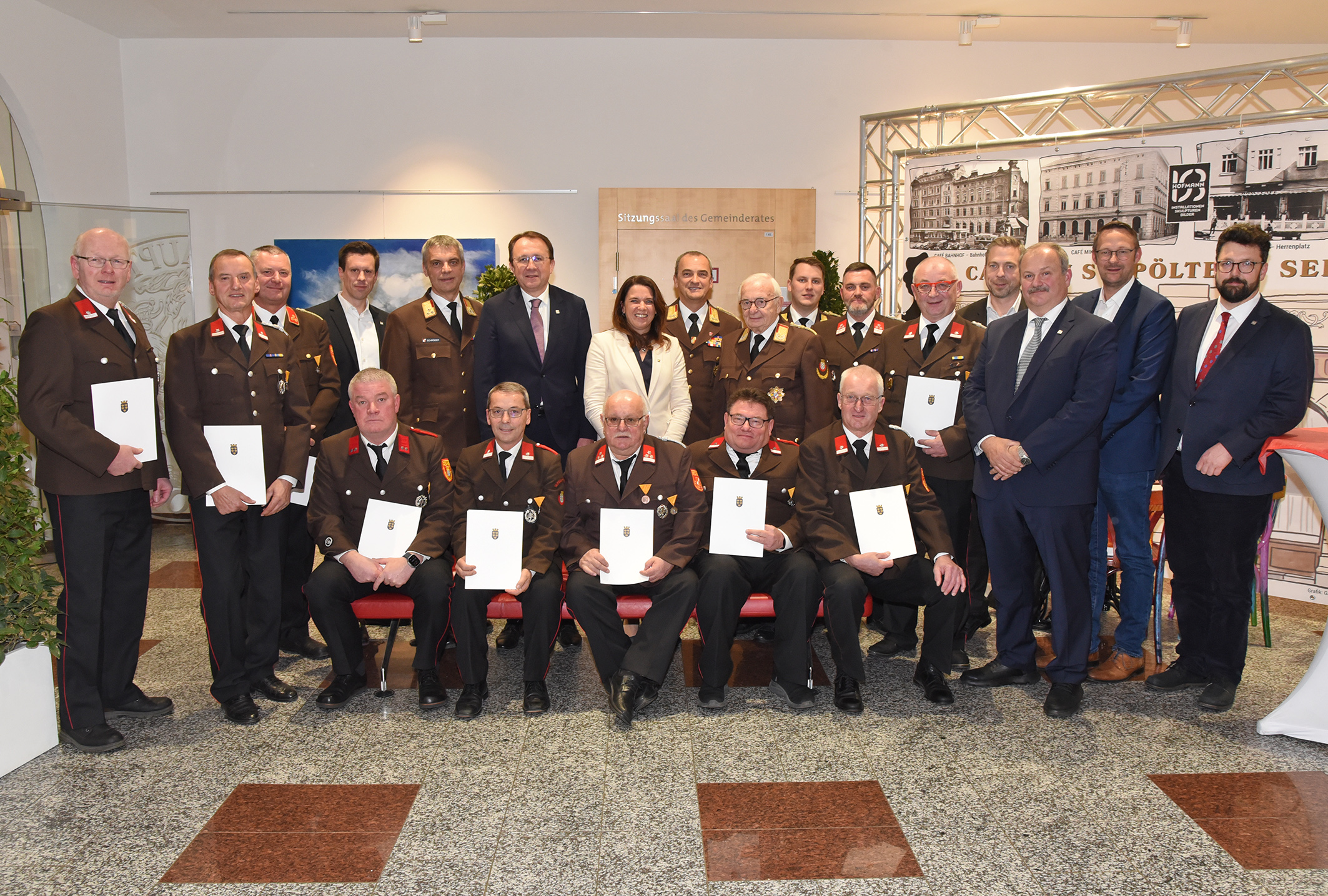 St. Pölten Stadt: Löschmeister Sebastian Traxler, Oberfeuerwehrmann Gerhard Zoth, Löschmeister Manuel Kräftner; Wagram: Hauptfeuerwehrmann Reinhard Lackinger; Viehofen: Hauptfeuerwehrmann Matthias Goll; Pottenbrunn: Hauptfeuerwehrmann Christoph Wegscheider; Spratzern: Oberfeuerwehrmann Josef Kornberger, Hauptfeuerwehrmann Daniel Killinger; St. Georgen: Löschmeister Christian Brenner; Stattersdorf: Oberbrandinspektor Markus Heinreich; Pummersdorf: Löschmeister Nikolaus Zichtl, Ehrenoberverwaltungsmeister Franz Schweighofer; Waitzendorf: Hauptfeuerwehrmann Markus Hirsch; Voith St. Pölten: Löschmeister Richard Radic.