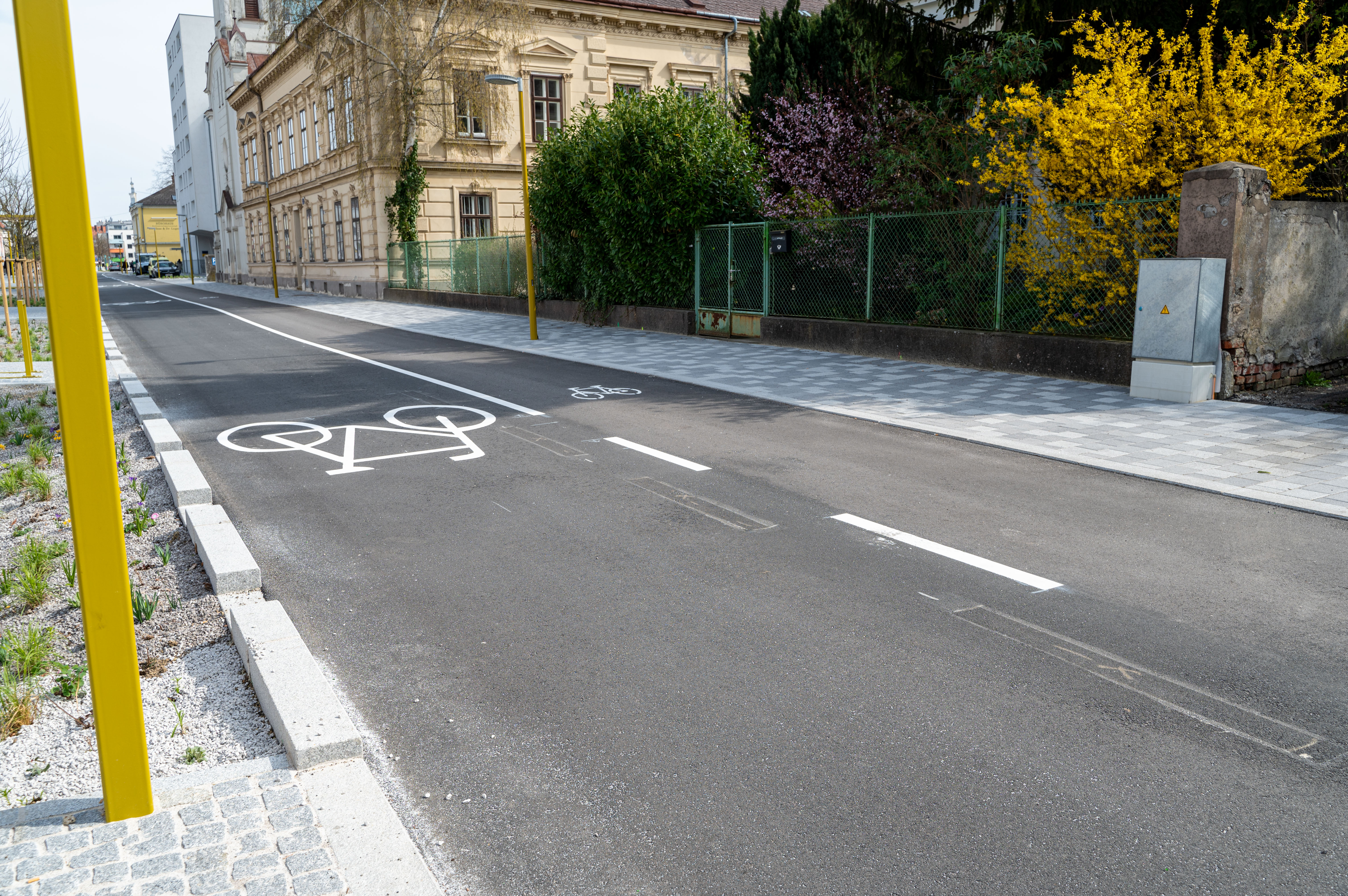 Auf dem Abschnitt der Dr. Karl Renner-Promenade zwischen Linzer Tor und Schulgasse finden sich neue Bodenmarkierungen. Es handelt sich hierbei nicht um eine Fahrradstraße im Sinne der Straßenverkehrsordnung, sondern um eine „fahrradfreundliche Straße“, wie sie auch bereits in anderen Landeshauptstädten erfolgreich zum Einsatz kommt. KFZ- und Radverkehr werden in Fahrtrichtung Linzer Tor gemeinsam geführt, der Radverkehr darf auf einem breiten und durch eine Sperrlinie getrennten Radfahrstreifen auch in die Gegenrichtung fahren.