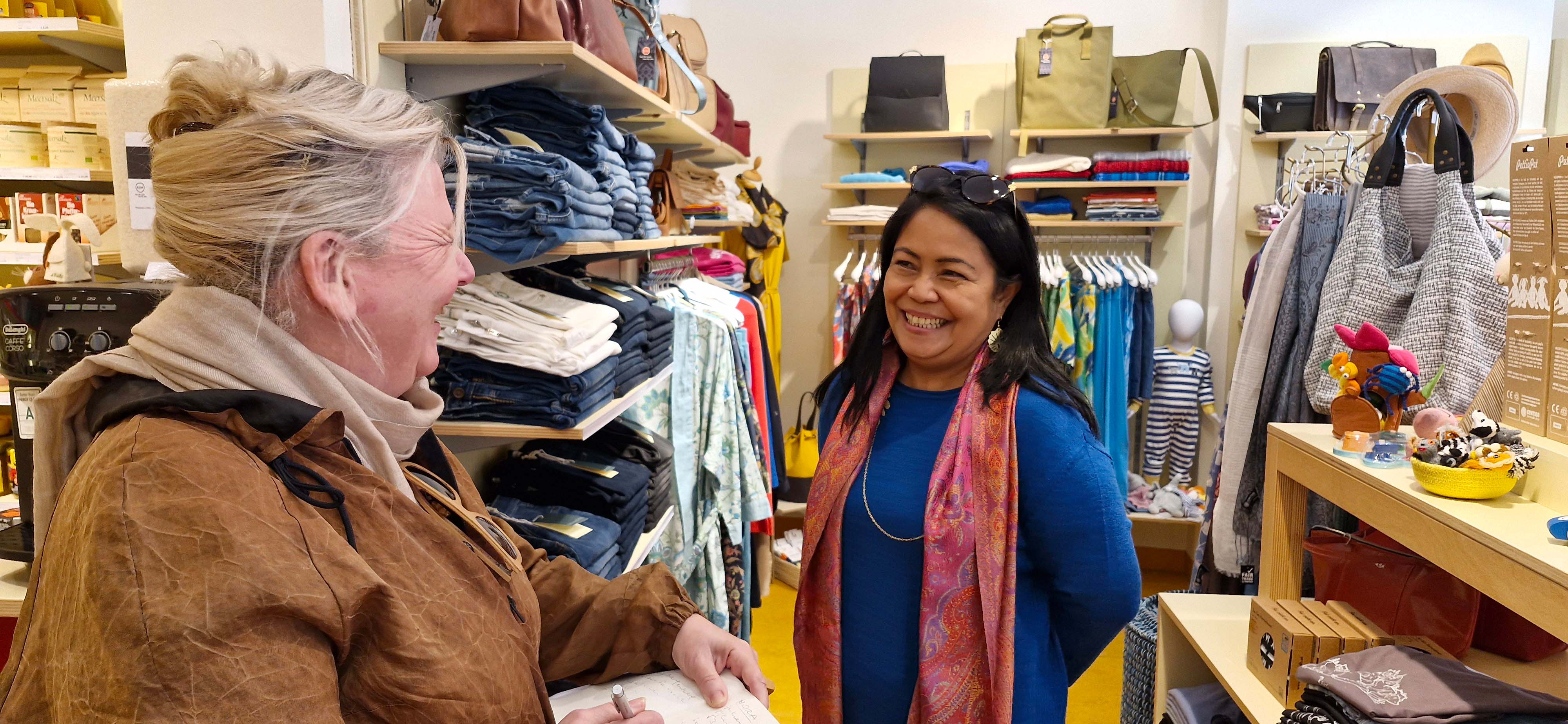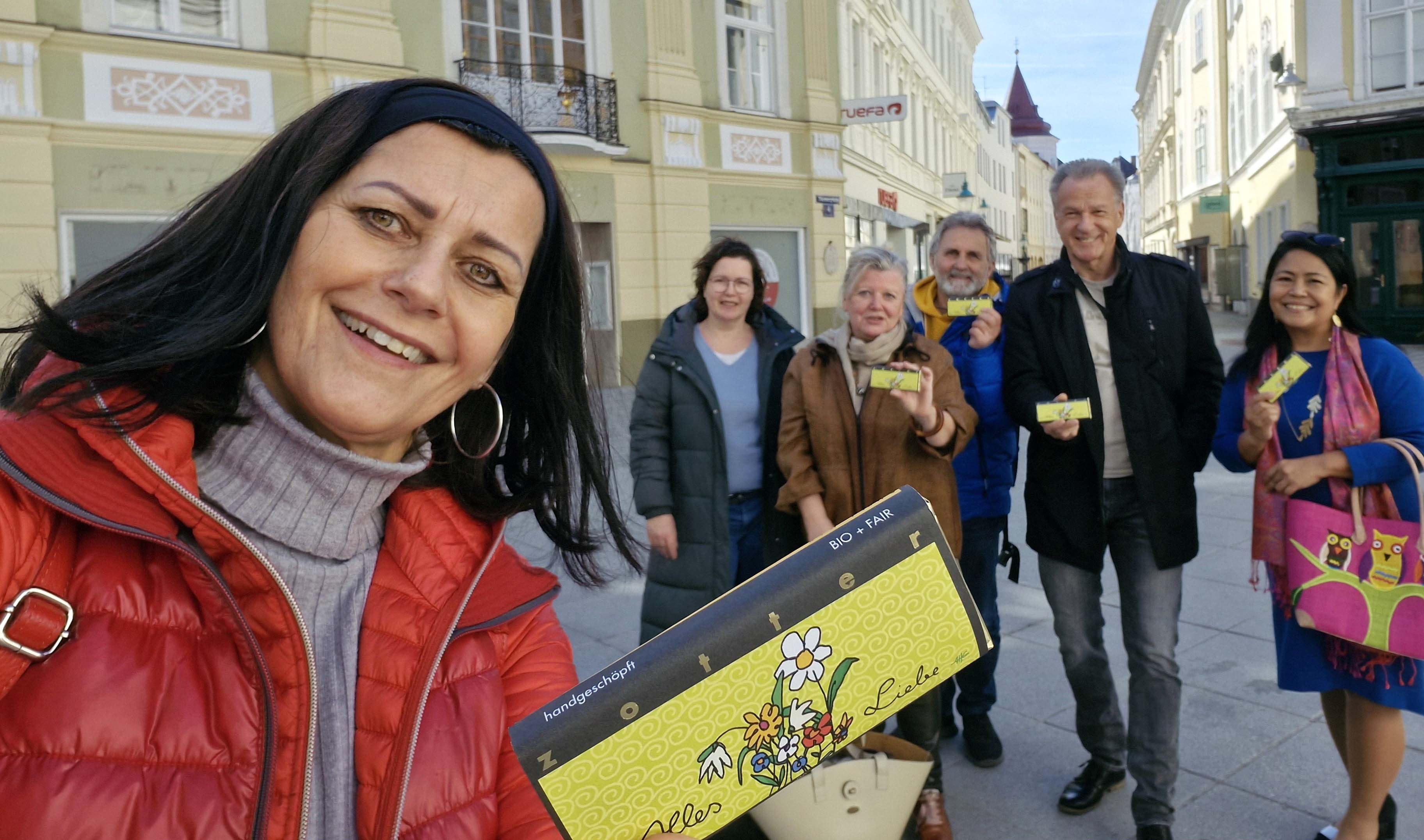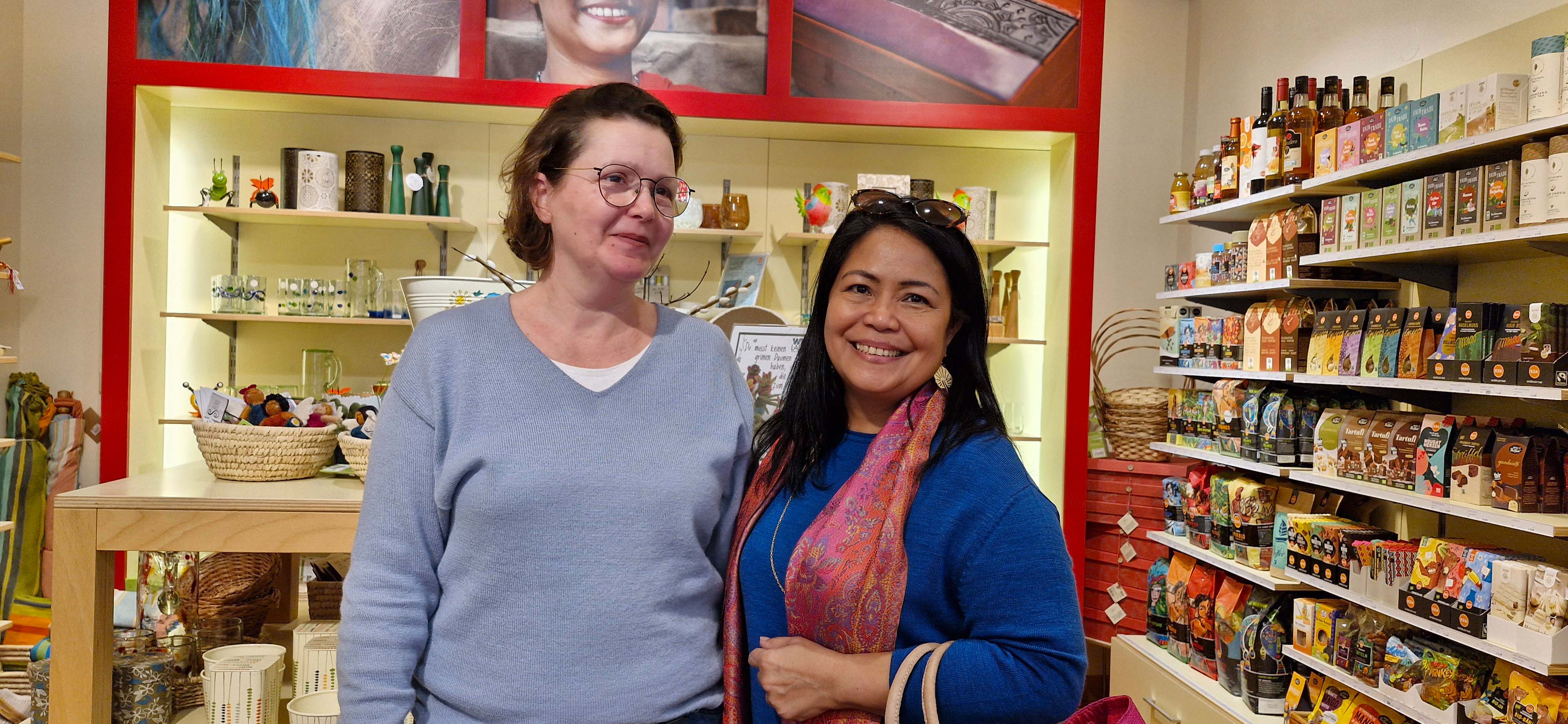 Der Weltladen ist bunt und vielfältig — und alle Produkte hier haben eine besondere Geschichte. Neben den Klassikern wie Kaffee, Tee, Schokolade oder Gewürzen gibt es hier Textilien, Lederwaren, Schmuck, Musikinstrumente, Spielzeug und vieles andere mehr. Alle diese Waren erzählen von den Besonderheiten des Herkunftslandes, von den Menschen, die sie erzeugen, von deren Lebensbedingungen, Ideen und Leistungen, aber auch von deren Rückschlägen. "Diese Menschen und ihre Lebensbedingungen stehen für uns im Mittelpunkt. Durch Fairen Handel wollen wir Menschen im Süden Lebenschancen eröffnen — und durch ihren Einkauf zeigen unsere Kund:innen ihre Solidarität mit diesen Menschen im globalen Süden, die oft von den Auswirkungen des Klimawandels massiv in ihrer Existenz bedroht sind", so Heidi Wagner vom Weltladen.