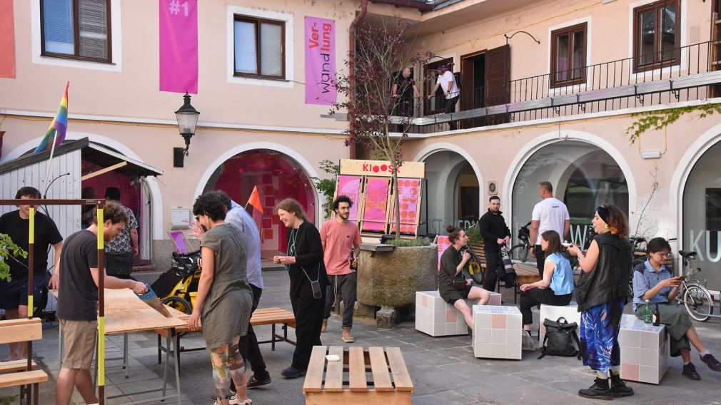 Gleichzeitig mit dem Festival wird das Festivalzentrum eröffnet. Es gilt als „Herz der Tangente“ und wurde als Treffpunkt für die St. Pöltner:innen und die lokalen und internationalen Künstler:innen sowie als neuer kultureller Begegnungsort in der Stadt entworfen. In den vergangenen Monaten gestaltete das venezianische Architekturkollektiv Biennale Urbana (Andrea Curtoni, Giulia Mazzorin und Andrea DeLorenzo) gemeinsam mit zahlreichen lokalen Akteur:innen und Studierenden der New Design University St. Pölten, der TU-Wien sowie der Kunstuniversität Linz und fast ausschließlich durch Wiederverwendung von gebrauchten Materialen einen öffentlichen Co-Working-Space, einen Vermittlungsraum und vieles mehr.