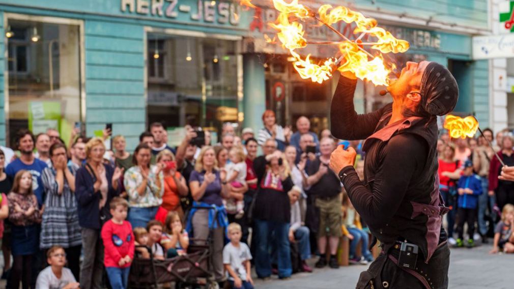 Straßenkünstler aus der Pariser Vorstadt schweben durch die Kremser Gasse, Feuer-Magier aus Estland erleuchten den Domplatz, ein Samurai aus Japan wagt todesmutige Stunts auf dem Rathausplatz, dazu erklingt in der ganzen Innenstadt mitreißender Latin-Sound — das Straßenkunstfestival „Bravissimo“ verzaubert jedes Jahr im Spätsommer die St. Pöltner und die Besucher der Innenstadt. An zwei Tagen wirbeln Artisten, Illusionisten und Musiker aus der ganzen Welt mit rund 70 Vorstellungen durch die barocke Stadtkulisse. Heuer wird die Innenstadt am 6. und 7. September zur großen Bühne fürs Bravissimo.