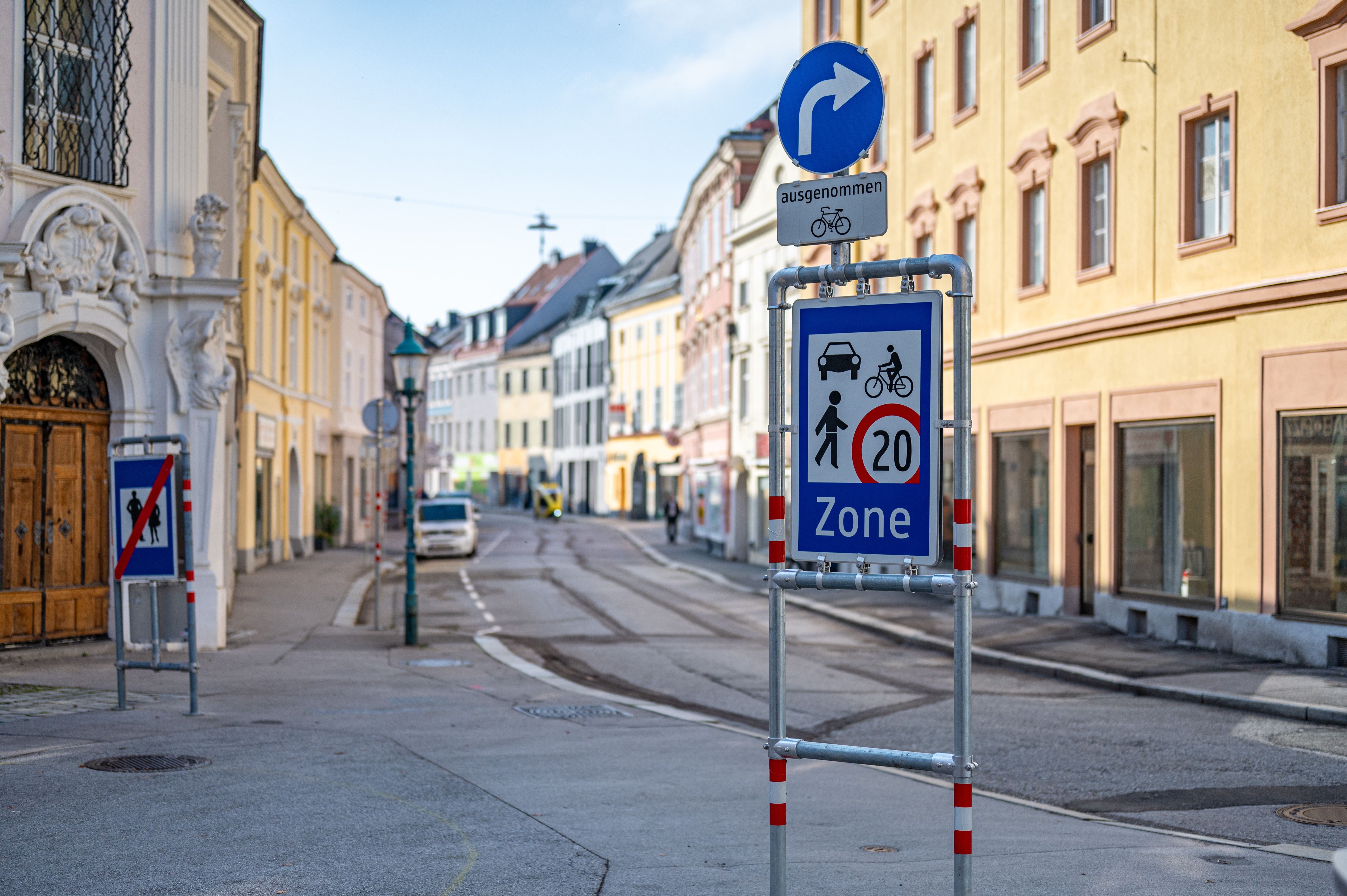 Der gesamte Straßenraum der Linzer Straße ab dem Linzer Tor sowie die Prandtauerstraße und die Heßstraße bis zum Roßmarkt sind nun als Begegnungszone mit einem Tempolimit von 20km/h beschildert.