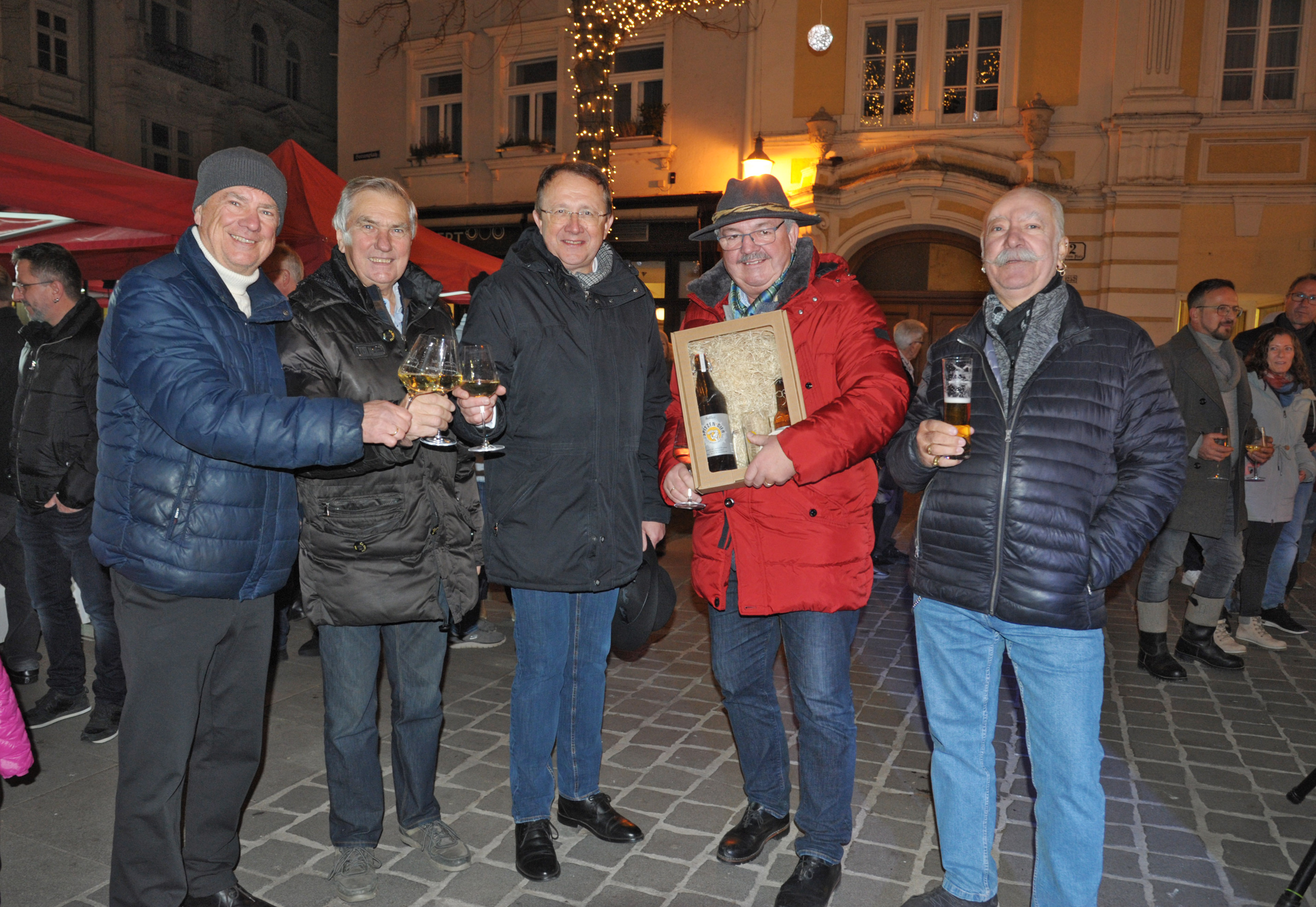 Treffpunkt für die Leopoldifeiern war heuer der Herrenplatz: Die Gastronomen "Rund um die Marie" hatten Traisentaler Winzer eingeladen, außerdem brachten Dirndlkönigin Anna König und Tourismus-Obfrau Conny Janker aus dem Pielachtal Dirndl-Spezialitäten mit. Bürgermeister Matthias Stadler lud dann zum Leopoldi-Empfang, bei dem die Brass-Band Schikk für beste Stimmung sorgte. "Ein Weinfest mit Brass-Musik — das könnte Leopoldifest-Tradition in St. Pölten werden", war Marketing-St. Pölten Geschäftsführer Matthias Weiländer begeistert, der die Organisatoren unterstützt hatte.