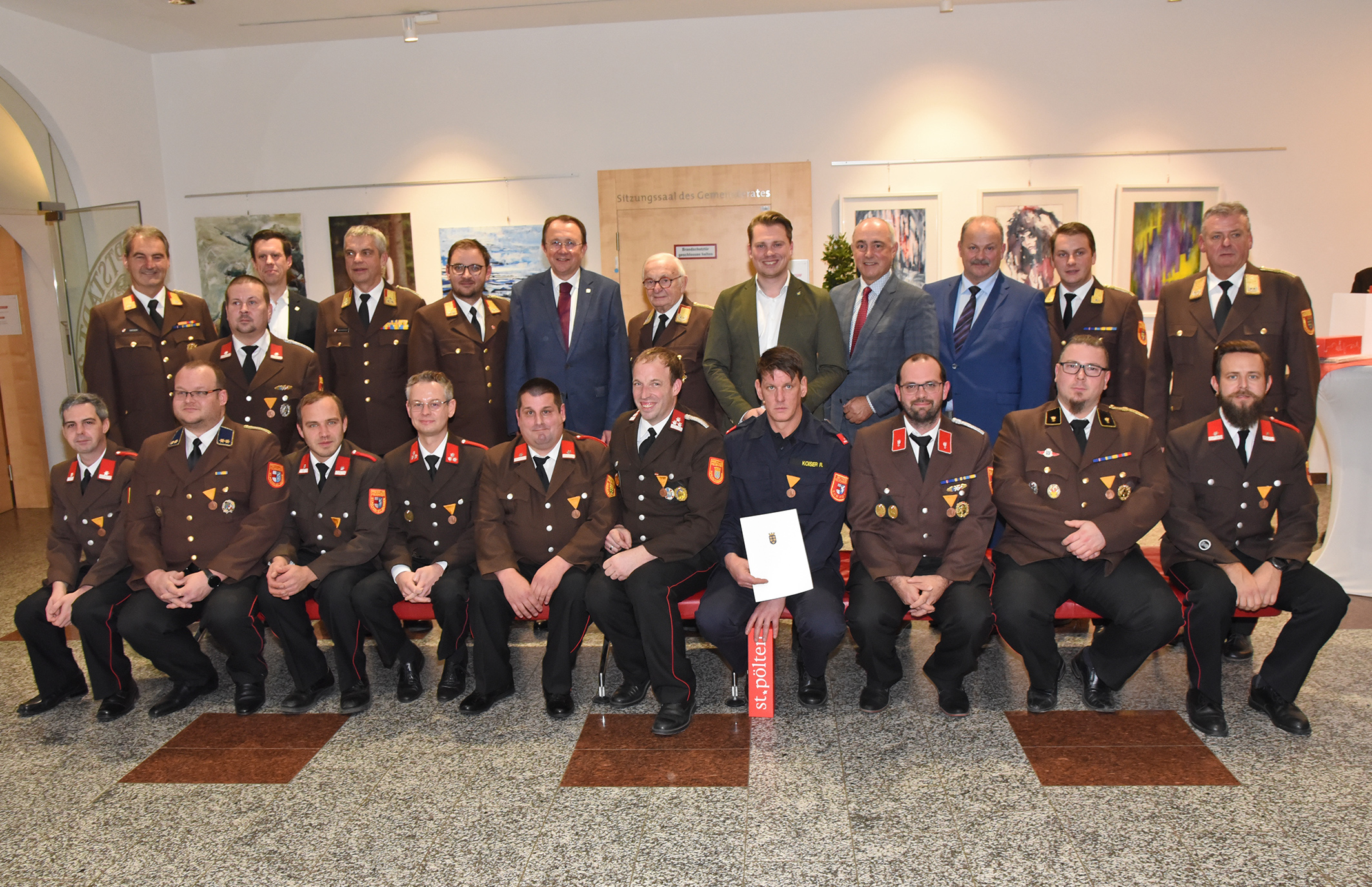 Zunächst wurde am 13. November im Rahmen eines Festakts im Rathaus die Ehrenmedaille des Landes Niederösterreich von LAbg. Florian Krumböck in Vertretung der Landeshauptfrau und Bürgermeister Matthias Stadler an 55 Feuerwehrmitglieder für ihre langjährige Dienstzeit vergeben. Insgesamt wurden 2.180 Jahre ehrenamtlicher Feuerwehrdienst anerkannt, wobei die Auszeichnungen für 25, 40, 50, 60 und 70 Jahre aktiven Einsatz vergeben wurden.