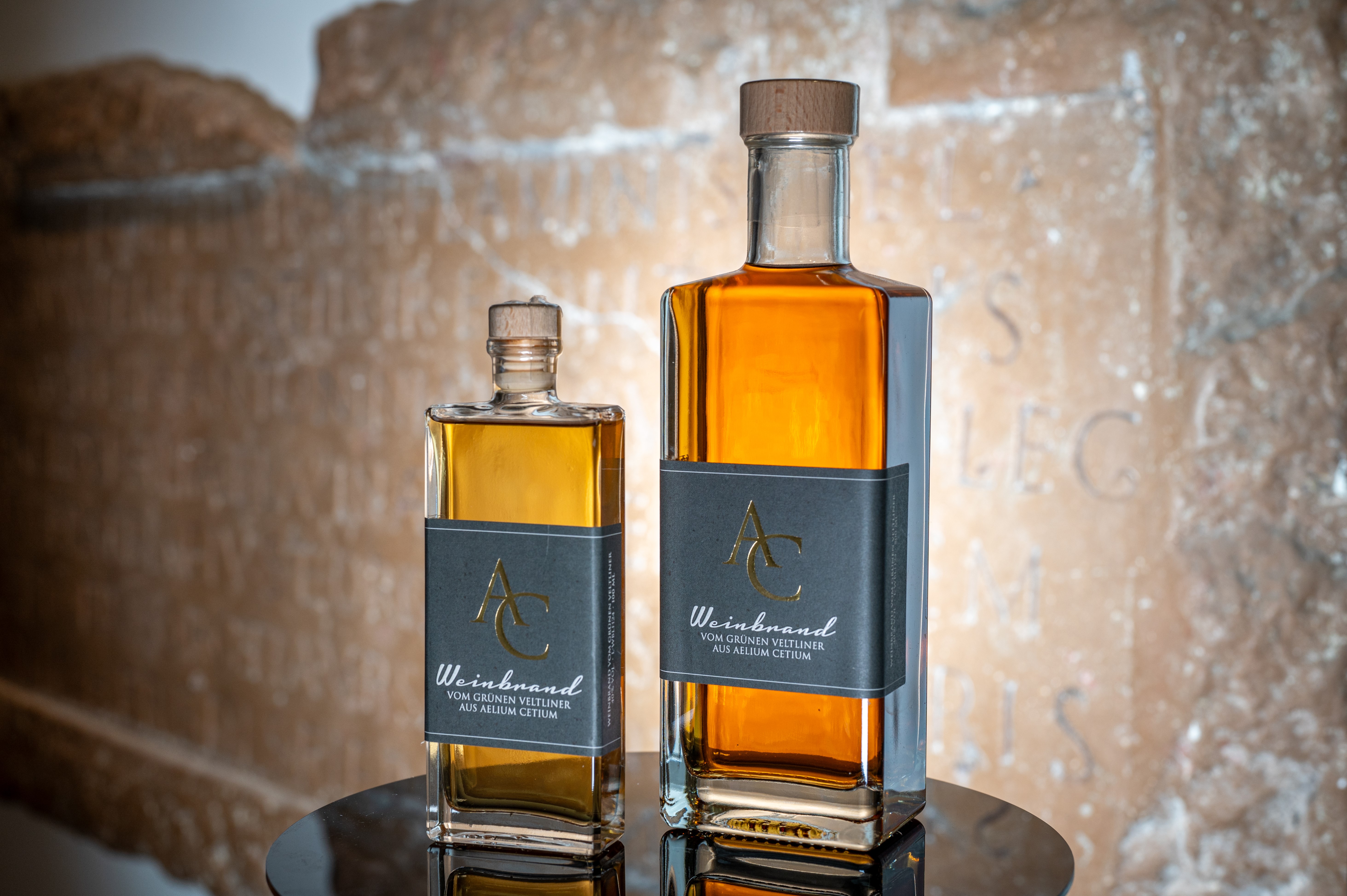 Hergestellt wird dieser in Nußdorf an der Traisen vom Weingut Herzinger. „Grüner Veltliner ist ja ein typisch Niederösterreichischer Wein und macht deshalb auch meistens das Rennen um den Hauptstadtwein. Die Idee, aus einem Veltliner einen noch edleren Tropfen als genussreiches Geschenk bzw. Souvenir mit St. Pölten-Bezug zu kreieren, führte uns zum Weingut Herzinger. Entstanden ist der „AC“ – der Weinbrand vom Grünen Veltliner aus Aelium Cetium“, erzählt Tourismusdirektor Stefan Bauer.