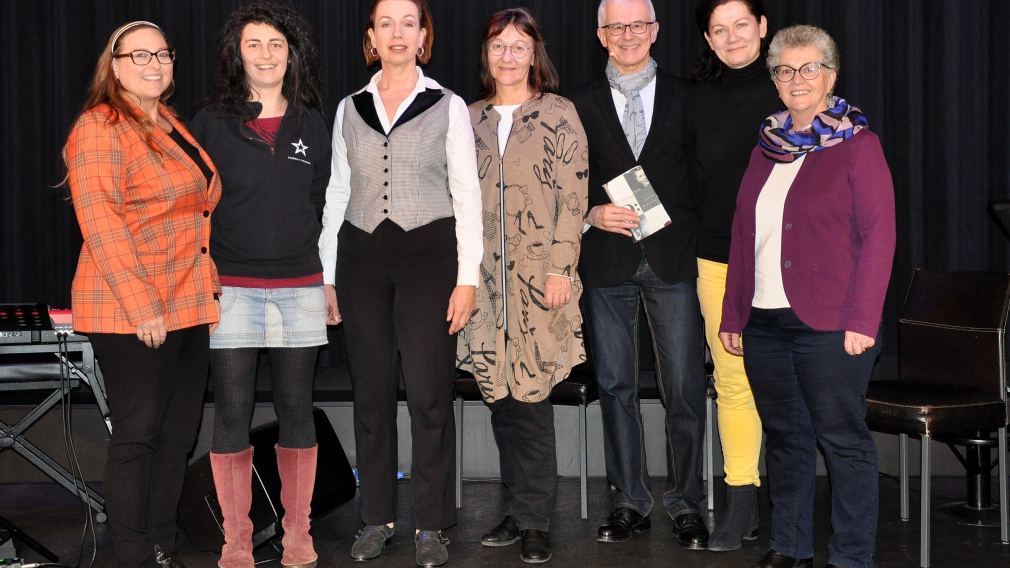 Die Frauenplattform St. Pölten lud zur literarisch-musikalischen Darbietung „Man ist, wer man sein soll. Der Jazzmusiker Billy Tipton: Eine Frau!“: Martina Eigelsreiter (Leiterin Büro für Diversität), Pia Koch (Cinema Paradiso St. Pölten), Katrin Weber, Birgit Braunstätter-Weninger (Frauen- und Mädchenberatungsstelle Frauenzentrum St. Pölten), Rudi Hausmann, Anita Zieher und Petra Fischer (Leiterin Mutter-Kind-Haus, Caritas St. Pölten) (v.l.n.r.) (Foto: Hannes Faschingeder)