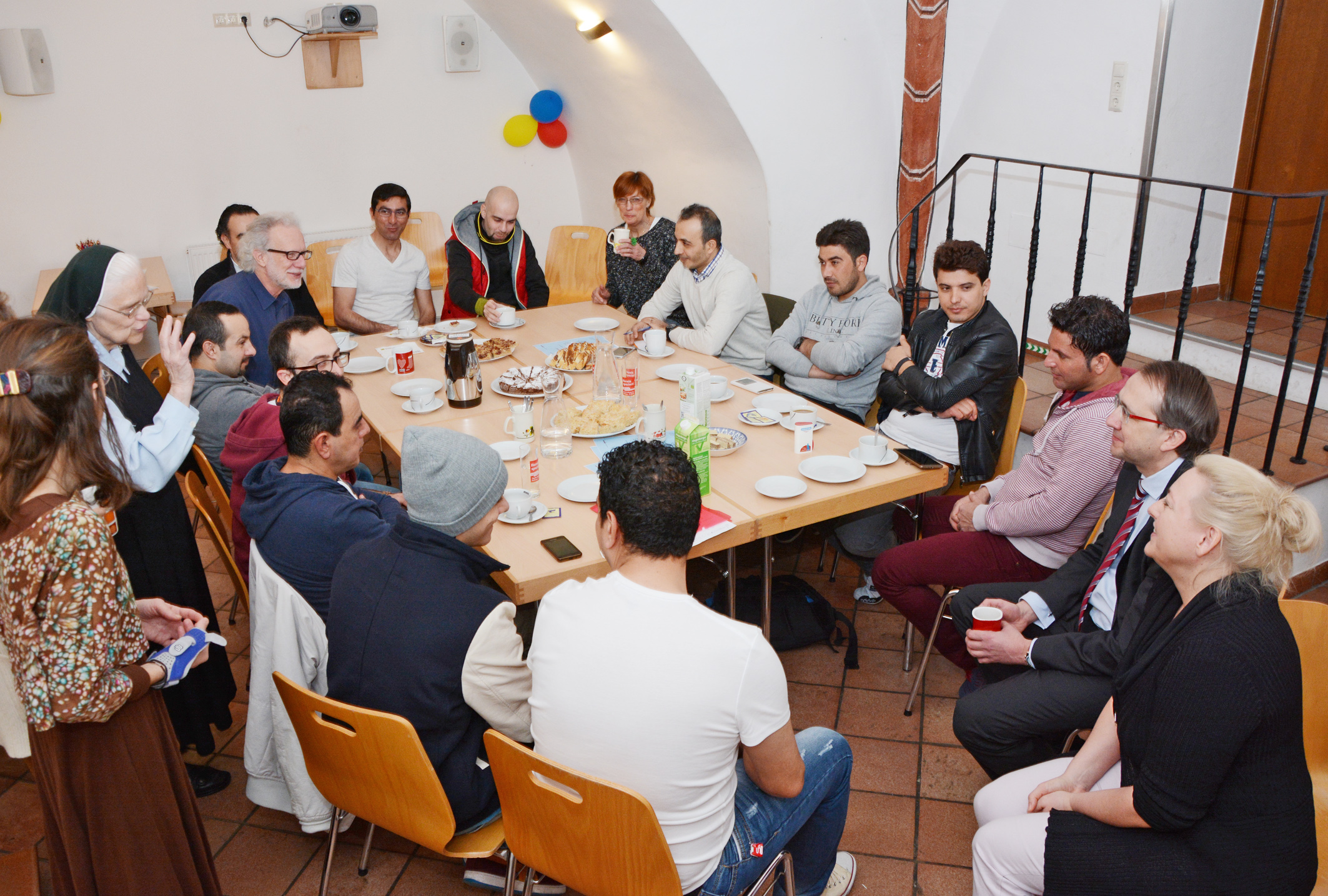 Das Diversity Café befindet sich im Saal der Begegnung und somit an einem zentralen Ort in unmittelbarer Bahnhofsnähe und steht allen Interessierten offen. Damit sich Kontakte, Beziehungen, Patenschaften entwickeln können, sind niedrigschwellige, kontinuierliche Angebote, bei denen man sich erst einmal begegnet und kennenlernt, eine wichtige Voraussetzung: hier werden Unbekannte zu Bekannten.