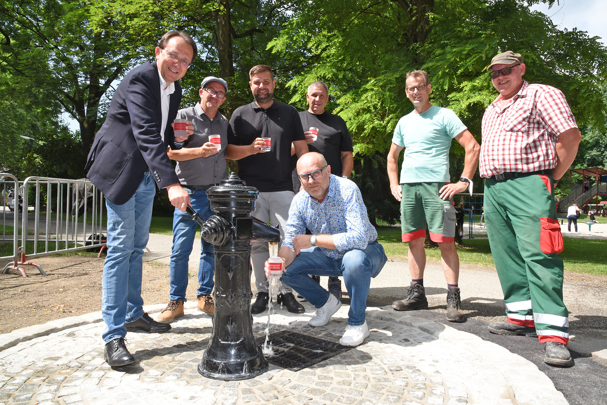 Trinkbrunnen sind ein wesentlicher Beitrag zur hohen Lebensqualität in der Stadt. Daher wird geplant, das Angebot an öffentlichen Wasserspendern zu erweitern. Beim Pavillon im Hammerpark wurde nun ein neuer Brunnen errichtet. Die Grabarbeiten, die Installation sowie der Ankauf wurden von der St. Pöltner Trinkwasserversorgung durchgeführt. Gepflastert wurde der Bereich um den Brunnen von der Stadtgärtnerei. Der Trinkwasserspender beim Spielplatz ist bereits in Betrieb und steht für alle zur Verfügung, die ihren Durst löschen wollen.
