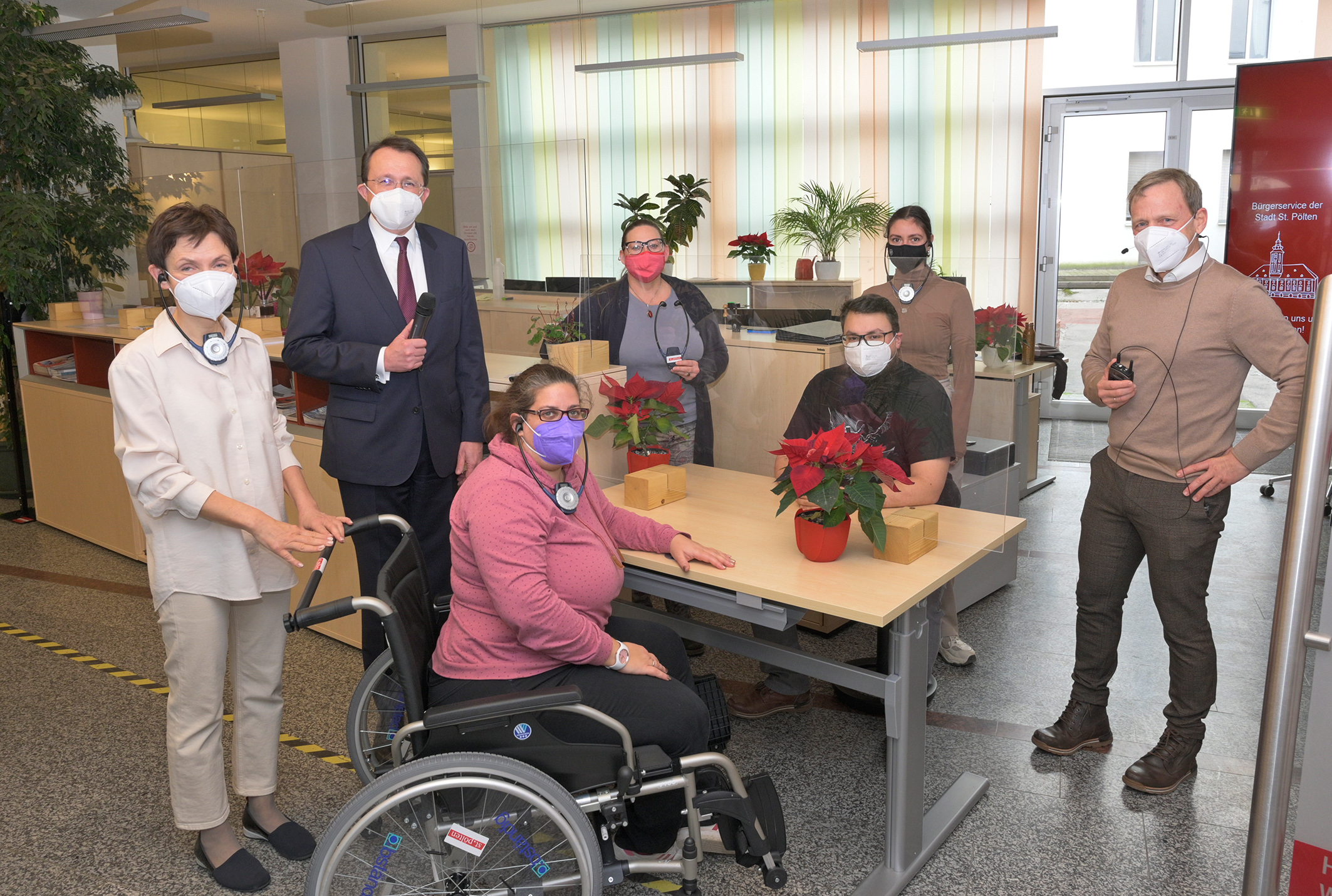 Mit einem Bündel von Maßnahmen wird das Rathaus sukzessive barrierefreier gestaltet: Seit Jänner 2022 können hochwertige Hörhilfen samt Headsets und ein Rollstuhl von Bürgerinnen und Bürgern für Termine am Magistrat ausborgt werden, ein größenverstellbarer Tisch ermöglicht Gespräche „auf Augenhöhe", Durchsagen im Lift helfen bei der Orientierung im Haus und ein eigener Raum im Erdgeschoss kann für Amtstermine gebucht werden.