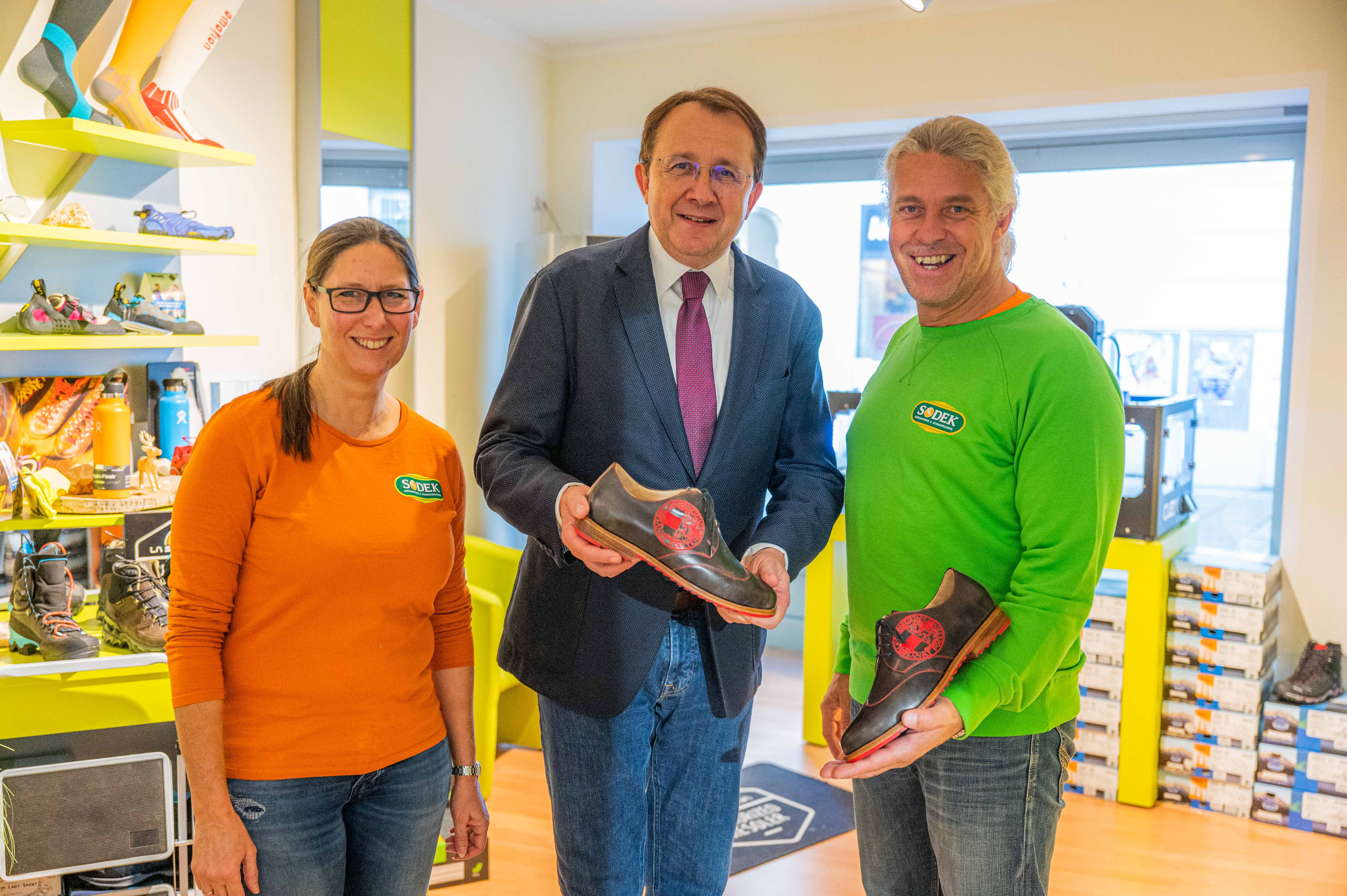 Ein weiteres Produkt für St. Pölten-Fans bietet nun die Firma „Orthopädie & Schuhtechnik Sodek“ an: Ein hochwertiger Schuh, der mit dem Logo der Landeshauptstadt verziert ist und passgenau auf die Füße des Trägers zugeschnitten wird. Der erste Schuh wurde gemeinsam mit Bürgermeister Matthias Stadler entwickelt, der von der Firma Sodek auch als Werbetestimonial des Schuhs auserwählt wurde.