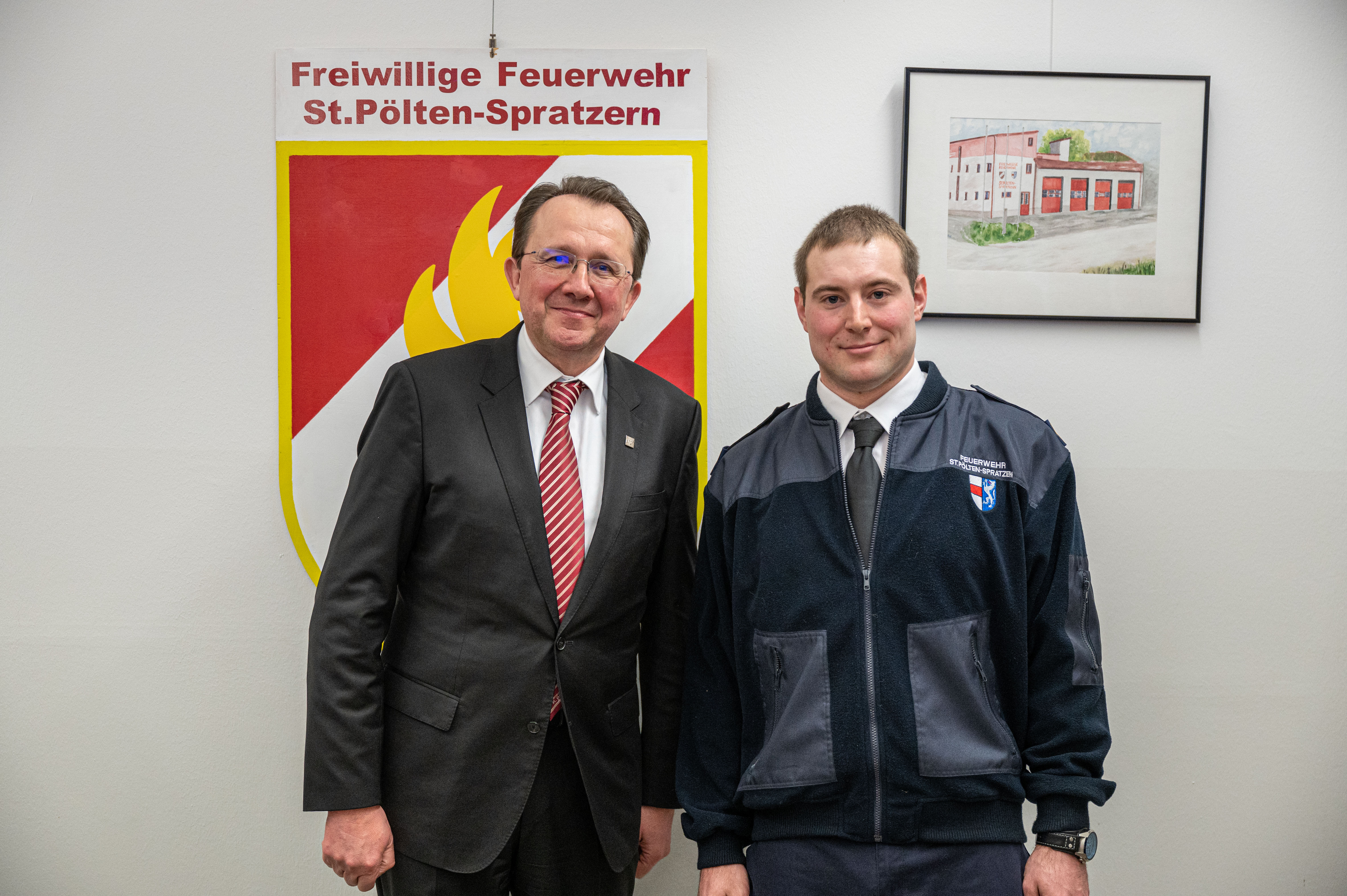 Er folgt damit seinem Vater Thomas, der seit 2000 im Kommando tätig war und seit 2008 als Kommandant der Spratzerner Wehr vorstand. Für dieses langjährige Engagement erhielt er von Vertretern des Bezirks- und Abschnittsfeuerwehrkommandos das Verdienstzeichen 3. Stufe des Österreichischen Bundesfeuerwehrverbandes. Feuerwehrintern wurde er mit dem Dienstgrad Ehren-Hauptbrandinspektor ausgezeichnet. Sein Nachfolger Daniel Kornberger war zuletzt Leiter des Verwaltungsdienstes in der Feuerwehr, diese Funktion übernimmt nun Gerhard Grünauer.