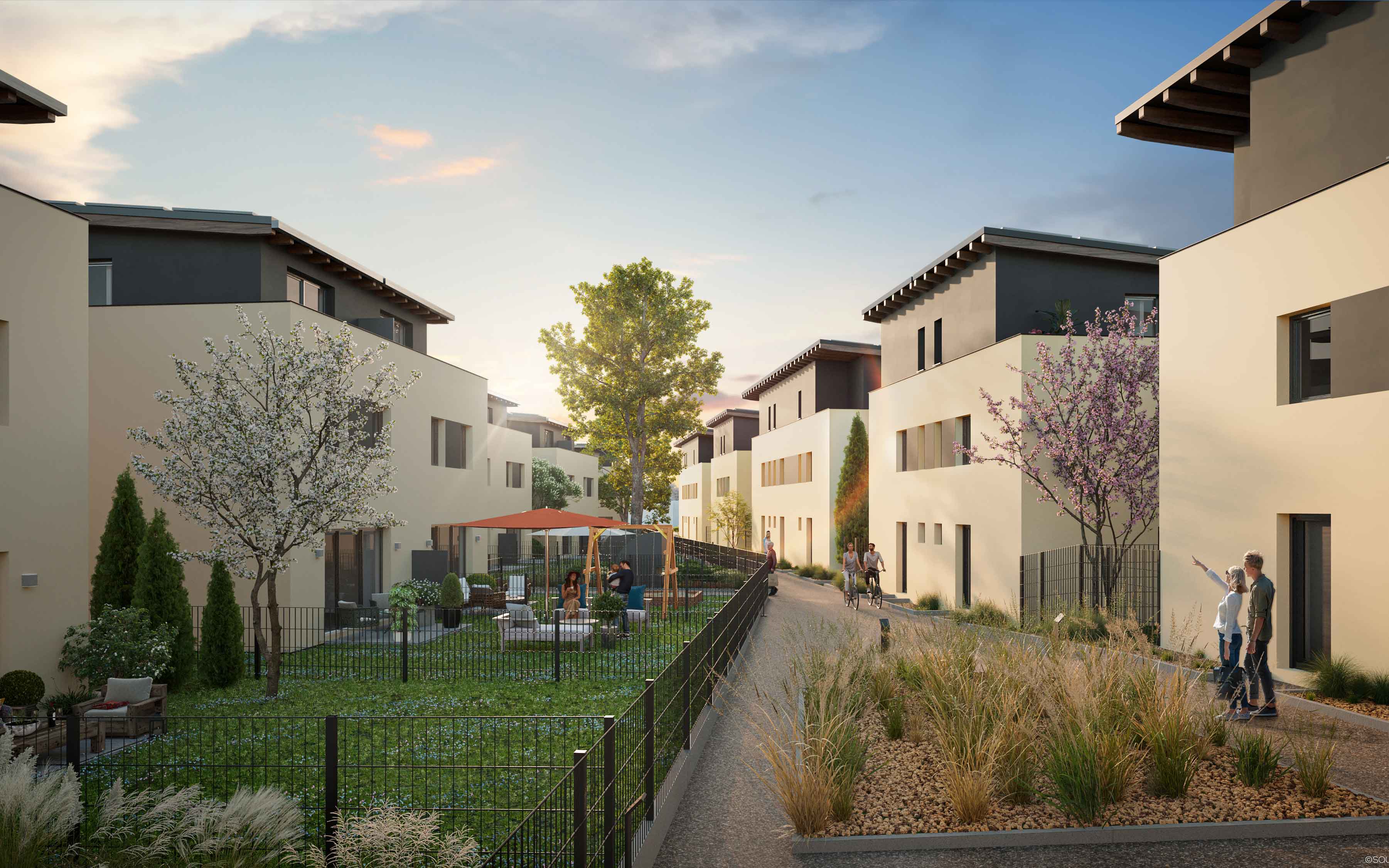 Ein großzügiges Raumkonzepts ermöglicht eine eigene Gartenlandschaft innerhalb der Siedlung.