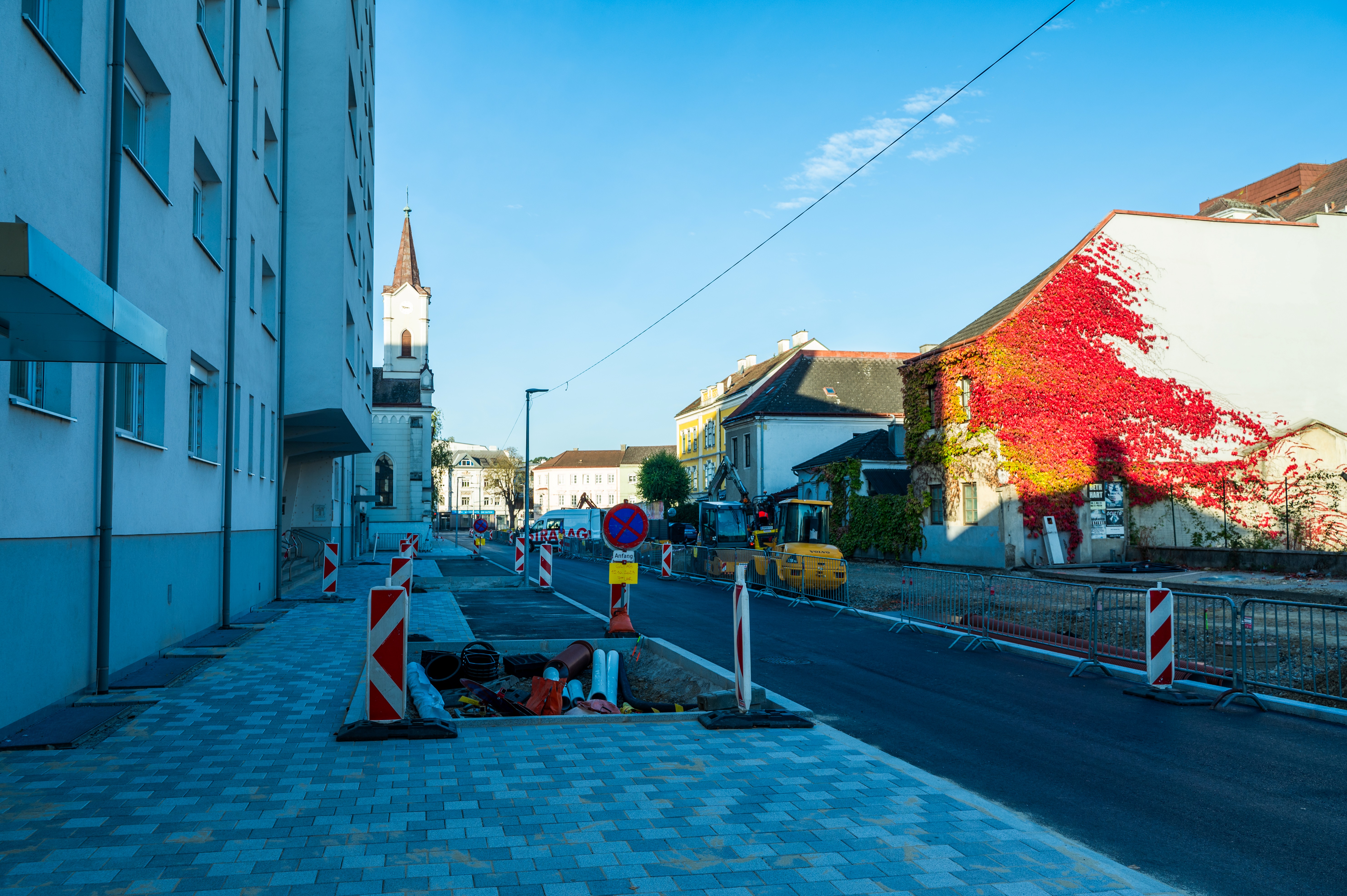 Bisher wurde die komplette angrenzende Schulgasse hergestellt, die Asphaltierung der Promenade durchgeführt sowie die Gehsteige und der Vorplatz des Stadtwerkehauses gepflastert. Noch in diesem Jahr soll nun, solange es die Witterung zulässt, der erste große Abschnitt zwischen Linzertor und Schulgasse fertiggestellt werden. Eine moderne Pflasterung, Sitzgelegenheiten, Spielgeräte, ein Wasserspiel und einiges mehr werden hier nach der Fertigstellung die Flächen aufwerten und zum Aufenthalt einladen. Aufgrund der Bauweise des Untergrunds nach dem Schwammstadtprinzip wird auch für eine gesunde Entwicklung der vielen Schnurbäume, die hier gepflanzt werden, gesorgt sein.