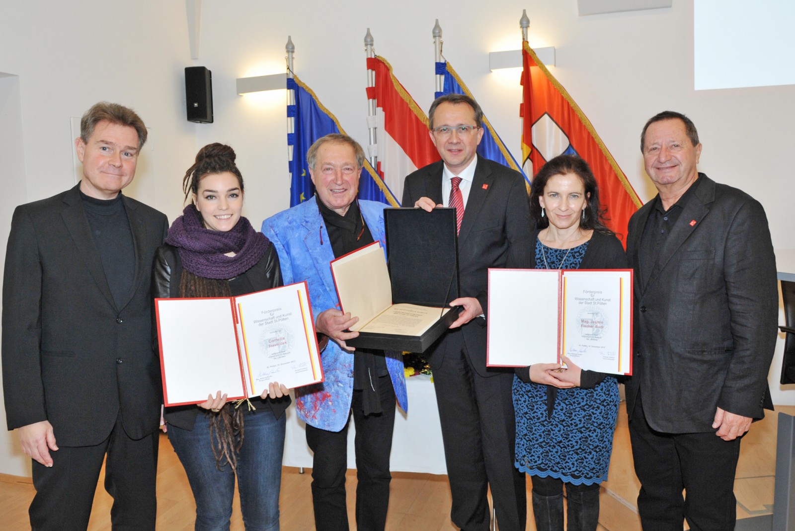 Die Stadt St. Pölten verlieh den Jakob-Prandtauer-Preis (mit Plakette und Urkunde) an den bildenden Künstler Mag. Josef-Friedrich Sochurek sowie den Förerpreis für Wissenschaft und Kunst (mit Urkunde und einer Würdigung von jeweils 1.600 Euro) an die Bildungsexpertin Mag.a Jasmin Fischer-Badr und die Literatin Cornelia Travnicek.