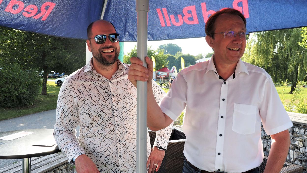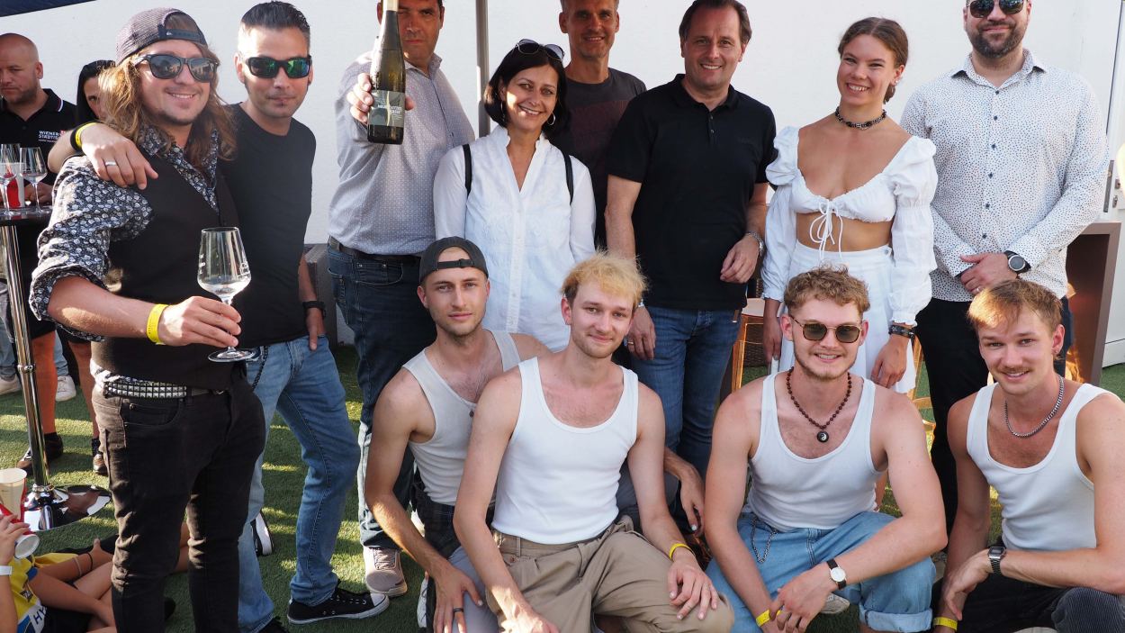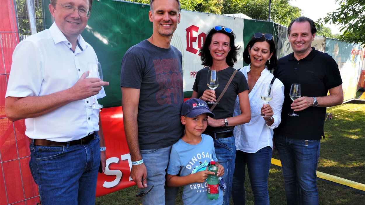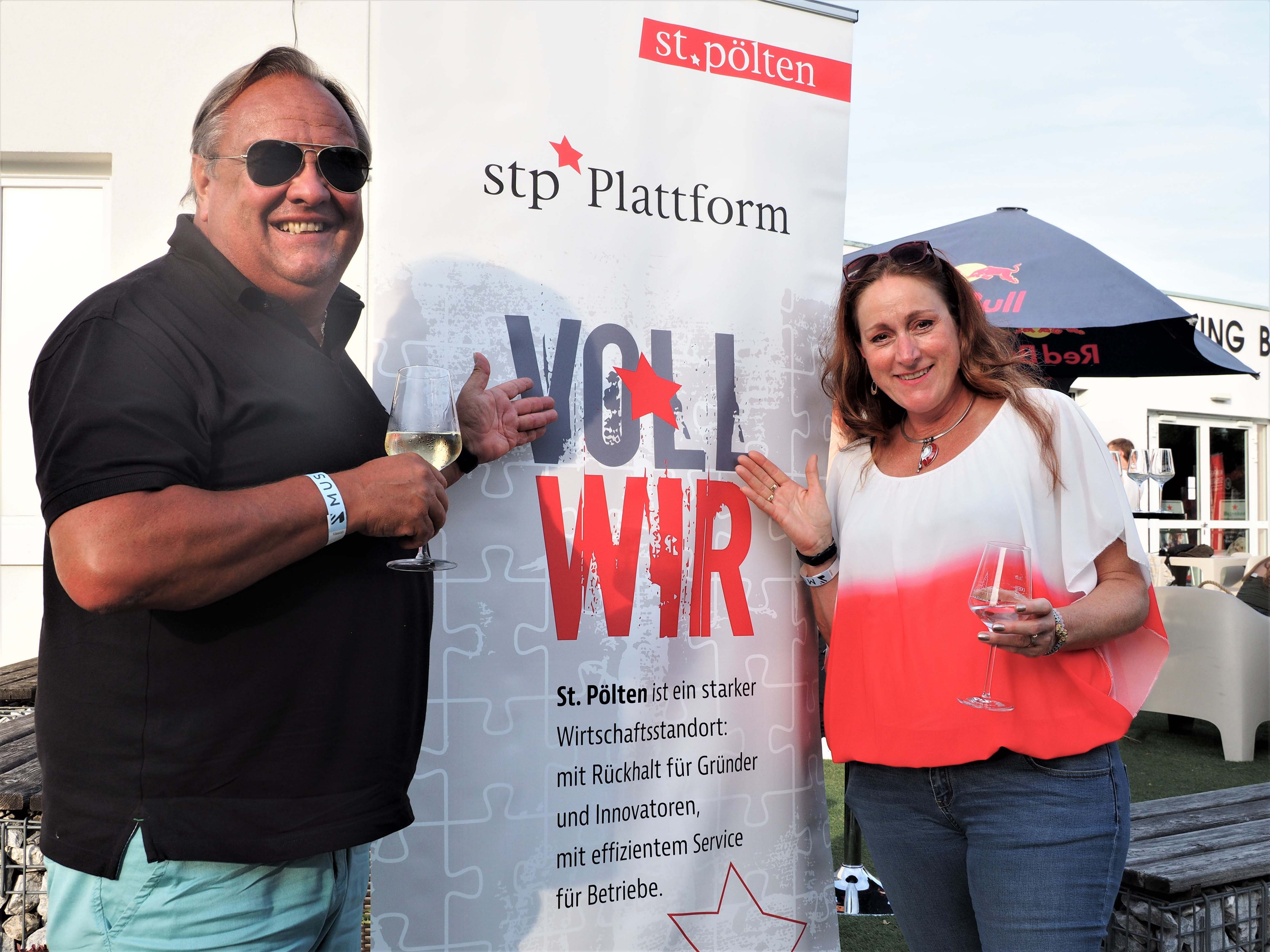 St. Pölten Plattform Vorstandsmitglied Alexander Klenk begrüßte die Plattform Mitglieder und Gäste auf der NXP Lasertron Terasse. Hauptstadtwinzer Rudi Hofmann kredenzte den Hauptstadtwein. Das who is who der St. Pöltner Wirtschaft war anwesend und begeistert von der heimischen Musikszene.