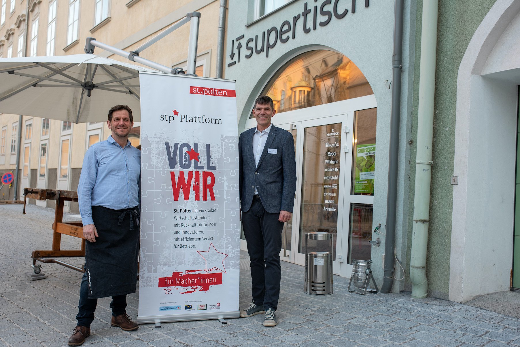 Supertisch macht aus einem Büro einen Wohlfühlarbeitsplatz — mit höhenverstellbaren Supertischen, Büroeinrichtungen, Maßmöbeln. Zu bestaunen am Domplatz. Dort ist Supertisch auch eine Bürogemeinschaft. Und war Treffpunkt für ein beeindruckendes Meet & Greet Open der stp*Plattform.