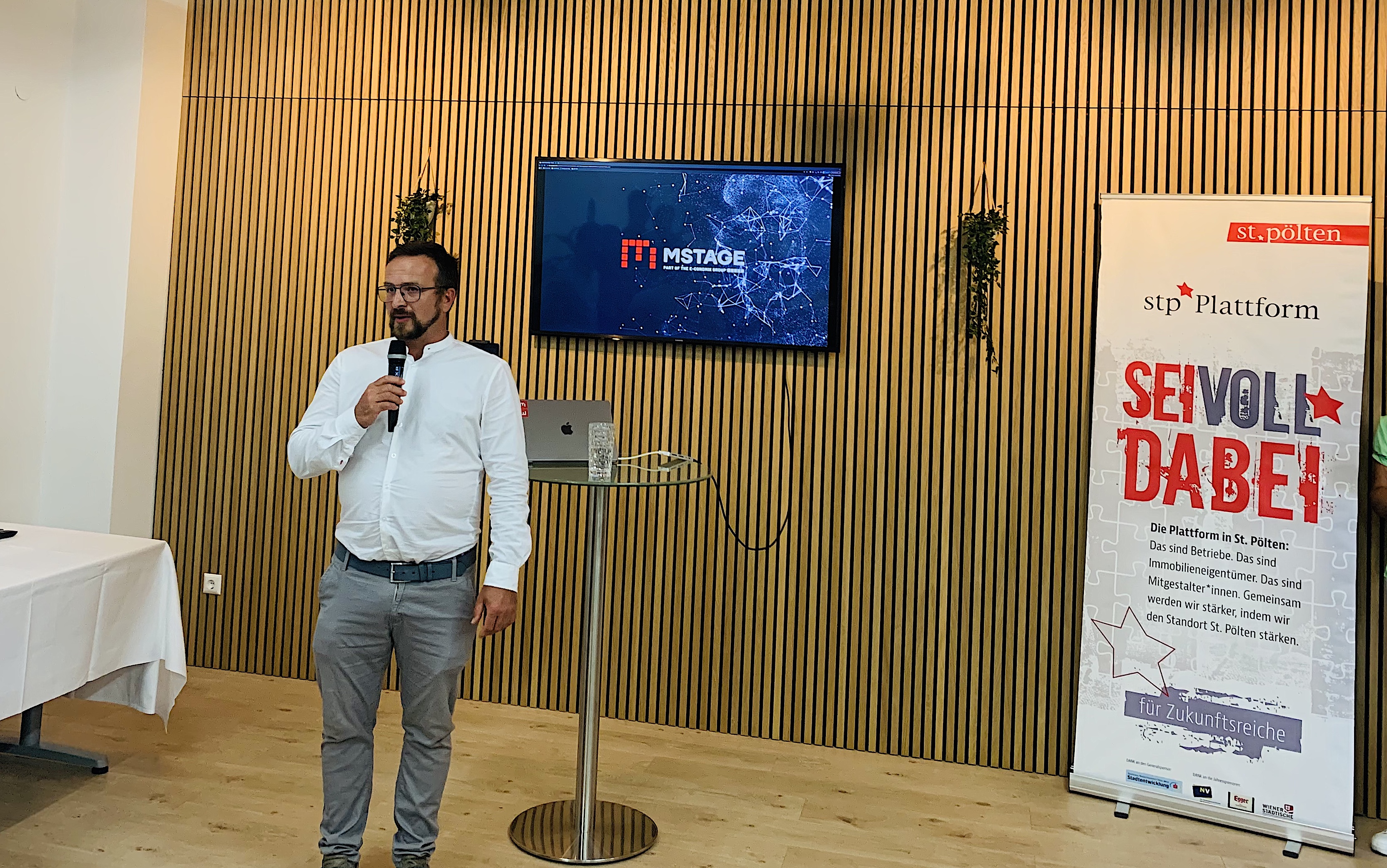 Mario Lengauer - im Hintergrund das MSTAGE-Team