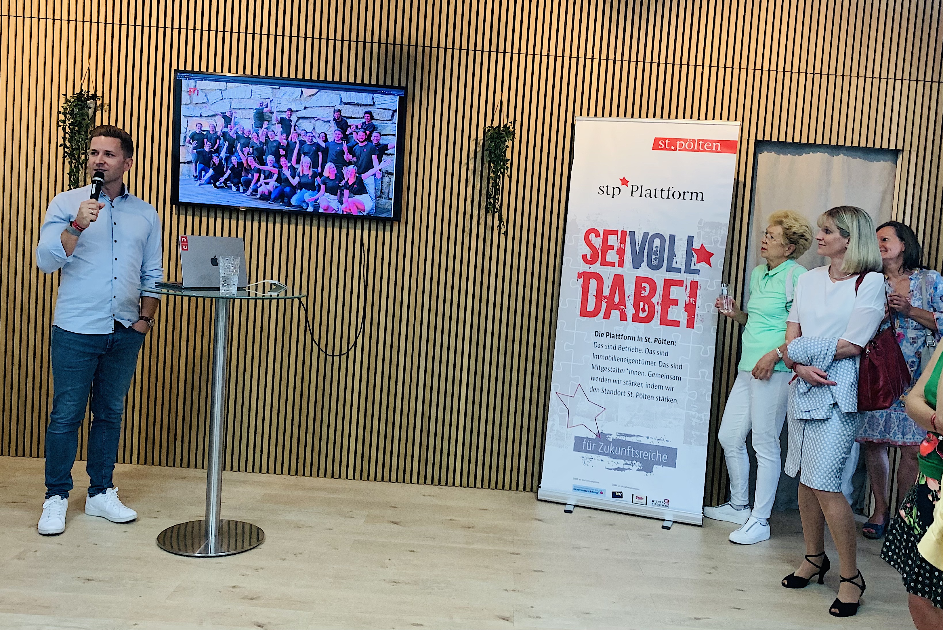 Sie entwickeln professionelle Onlineshops und beraten Unternehmen in deren Digitalstrategie — die Mitarbeiter von MSTAGE mit Standort Hofstatt in St. Pölten. stp*Plattform-Mitglieder konnten sich über das Angebot und die Entwicklung der größten österreichischen E-Commerce-Gruppe an einem Meet & Greet-Abend informieren.