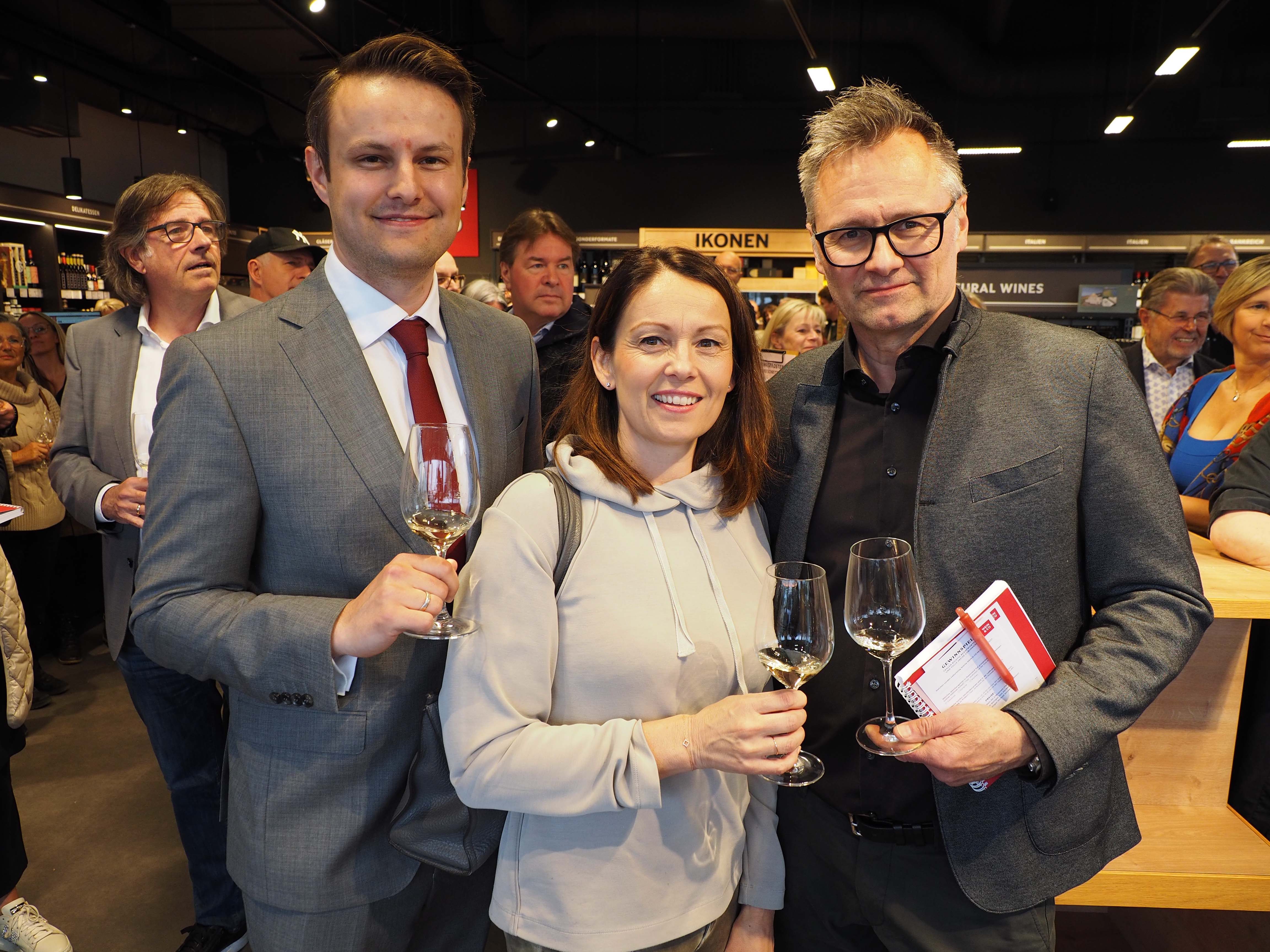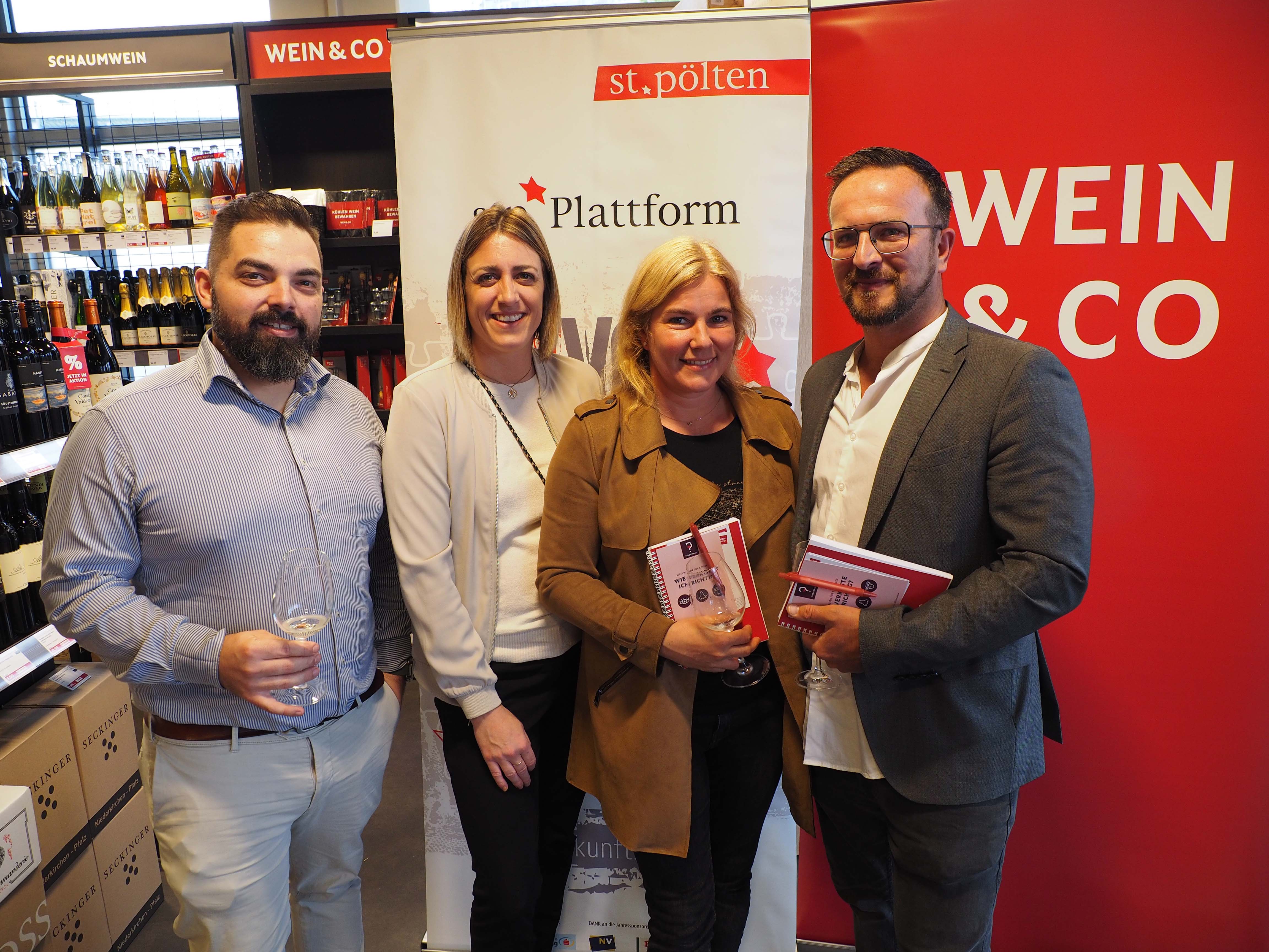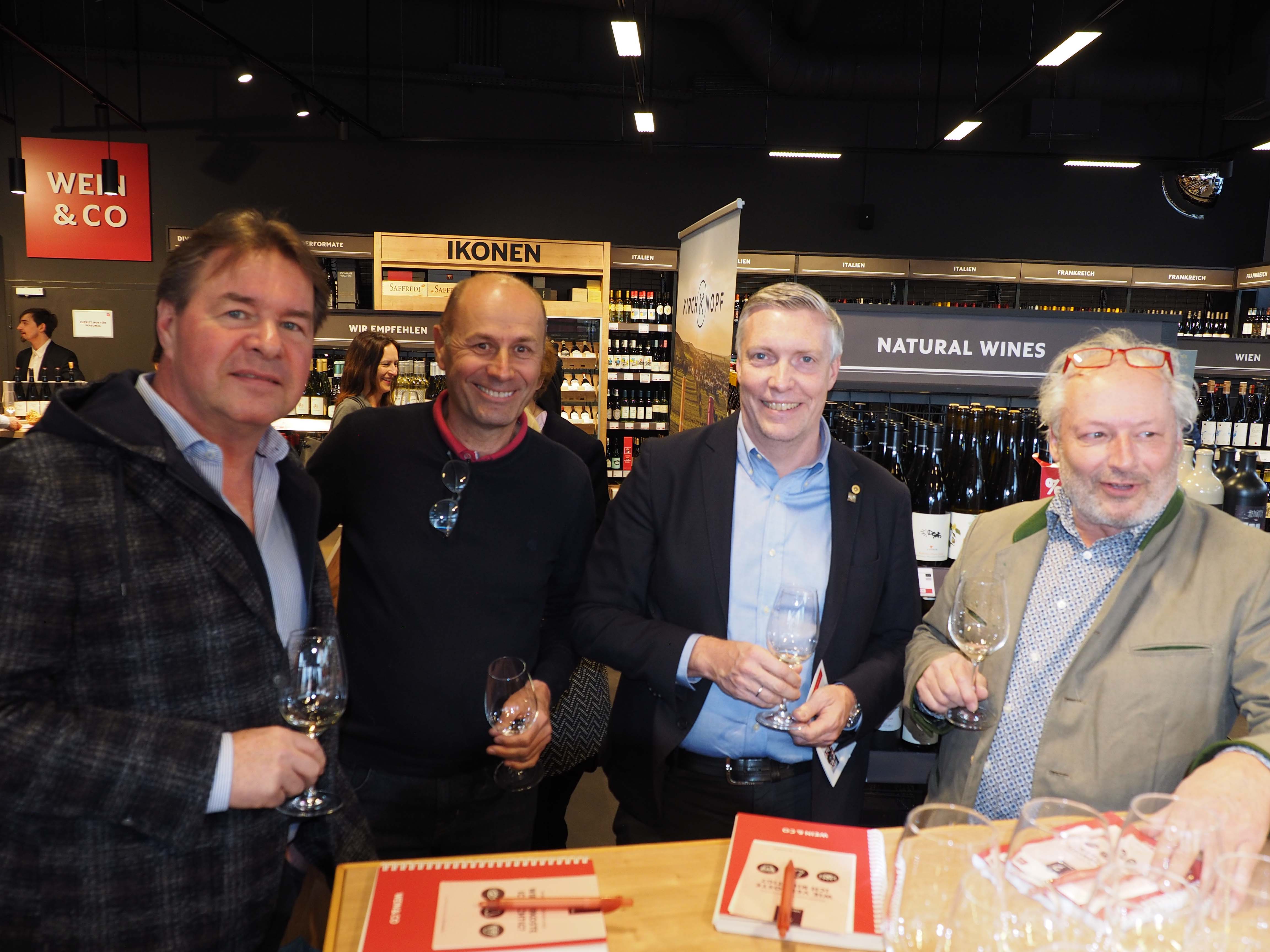 Johannes Vasak und Nicole Zunt von Wein & Co mit Kerstin Kral und Matthias Weiländer.