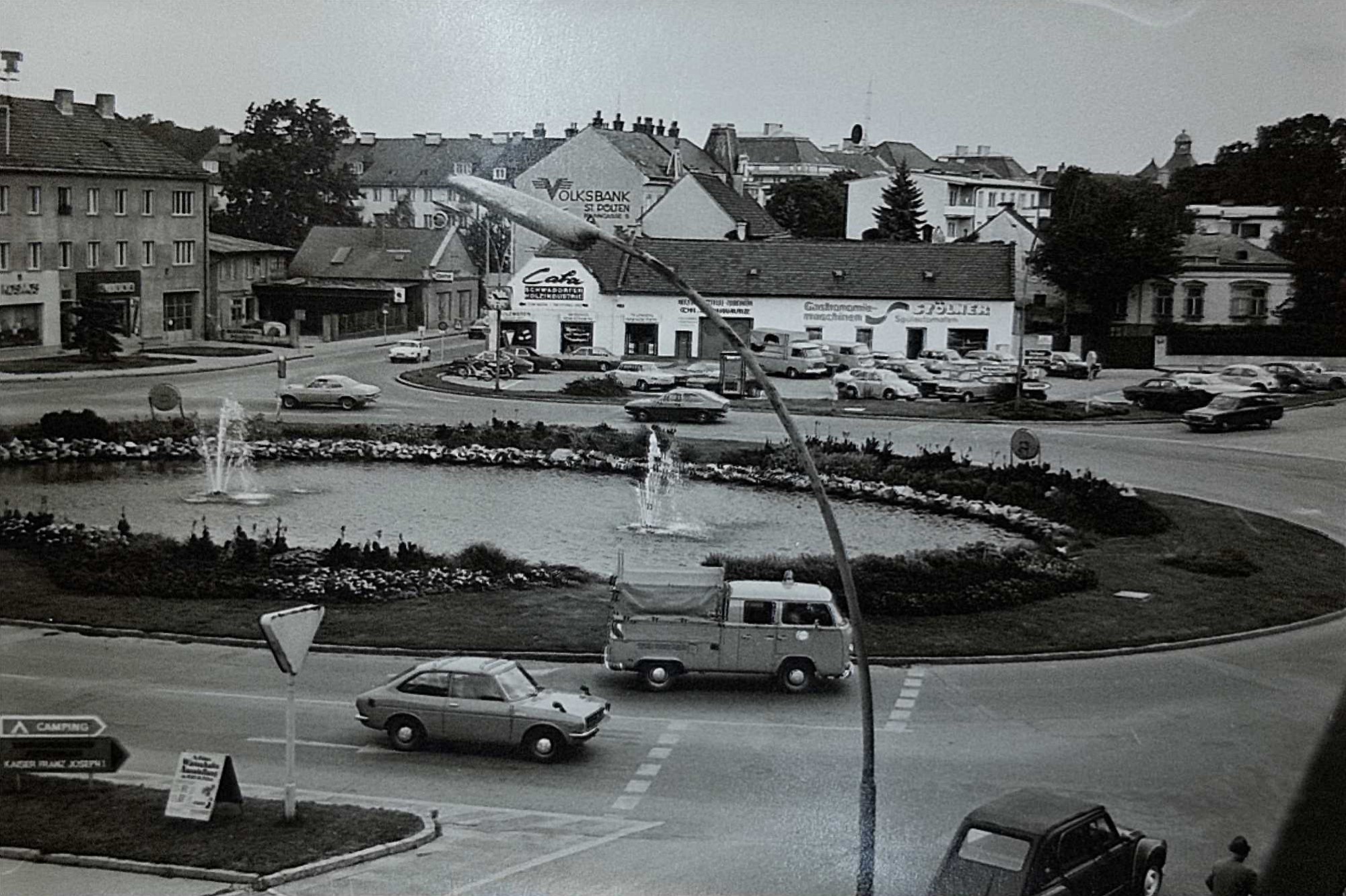 Ja, ich habe das Hartner-Haus in der Wiener Straße gekauft, das war vier Generationen lang eine Bäckerei. Ich habe das mit dem Architekten Pfoser komplett umgebaut und ein Kaffeehaus dort betrieben — da gab es den ersten Cappuccino in St. Pölten. Sehr begehrt waren unsere Golatschen. Wenn wir mit den duftenden, warmen Golatschen nach vorne gegangen sind, waren schnell alle weg. Das Café hab ich dann weitergegeben, jetzt ist der Südtiroler in dem Geschäftslokal.